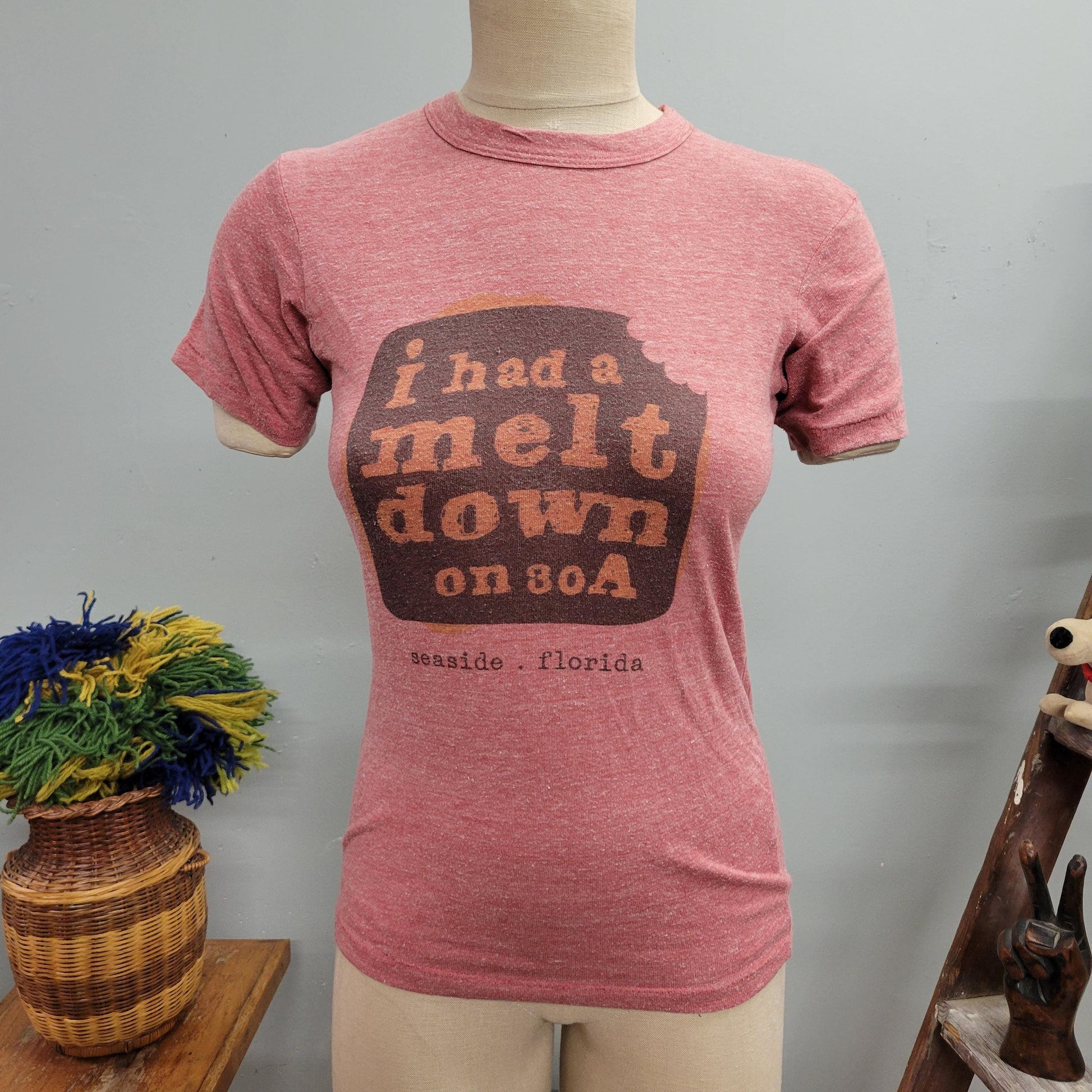 vtg 70s GRILLED CHEESE TSHIRT // vintage florida baby tee seaside golf course funny saying I had a meltdown funny souvenir tee retro soft