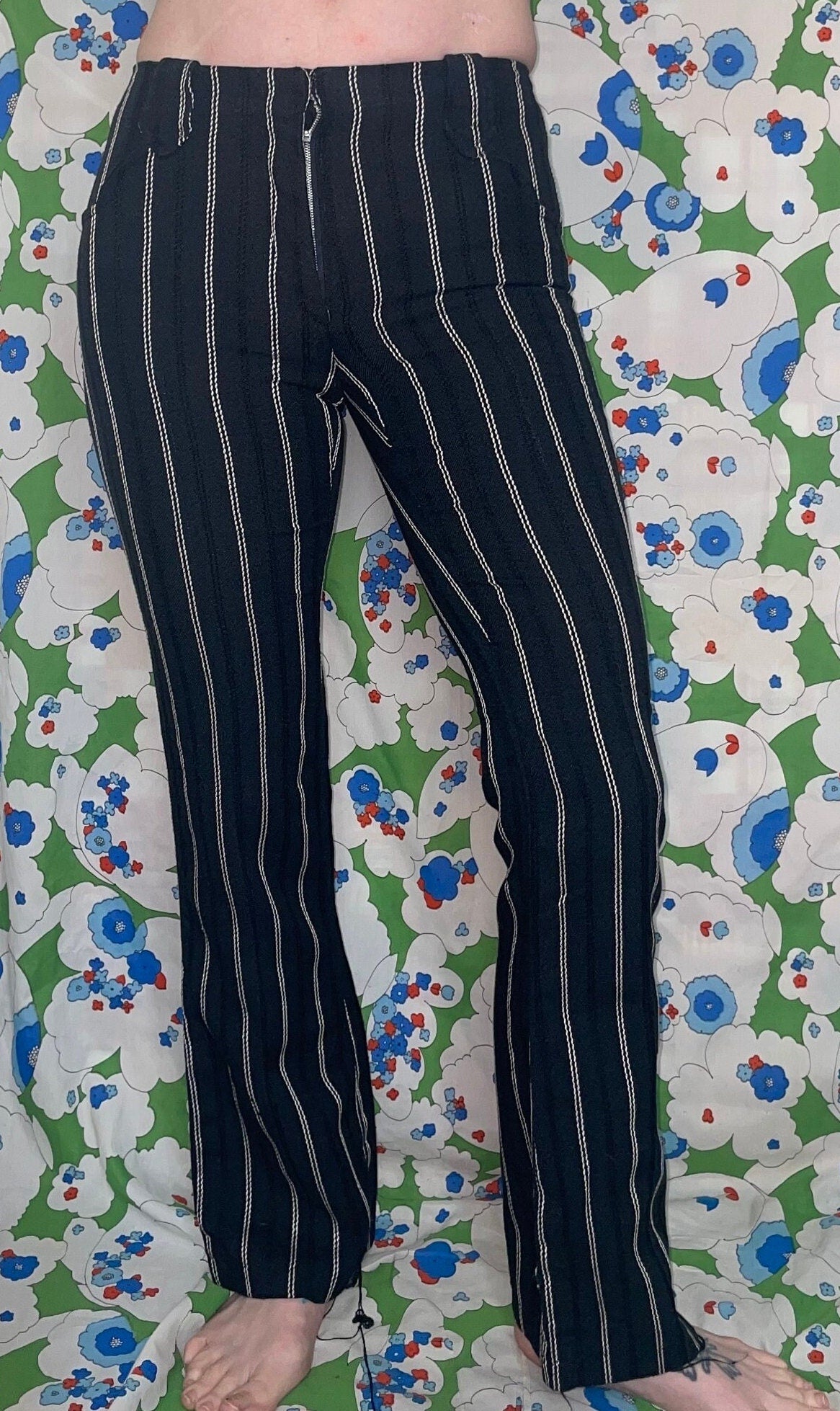 vtg 70s H BAR C PANTS // vintage black & white striped rayon trousers hip hugger flare leg boot cut western retro mod minimalist fall winter
