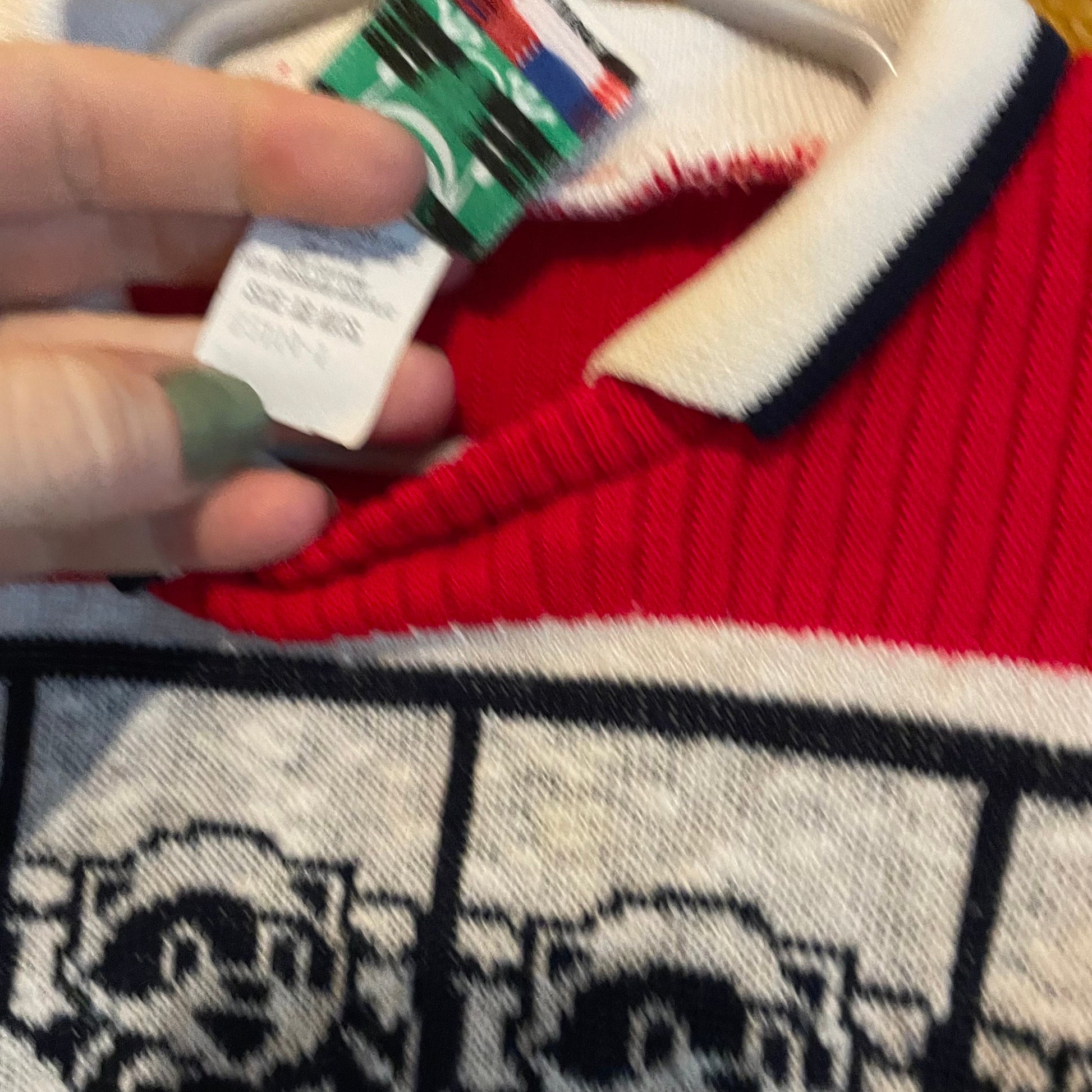 vtg 70s 80s cute raccoon print knit jumper red & black cartoon animal retro collared sweater unisex kids clothes red top gender neutral baby size 18 months baby