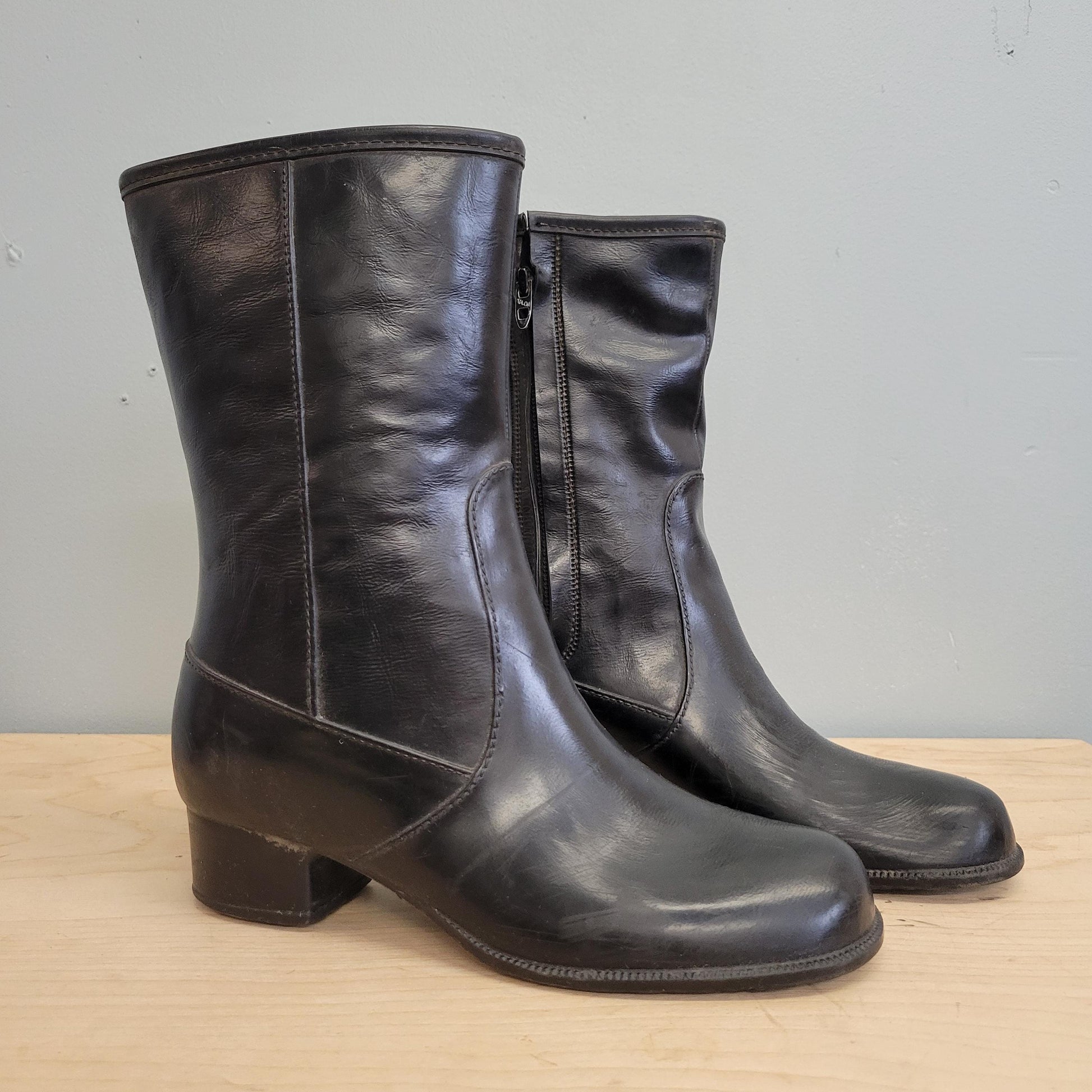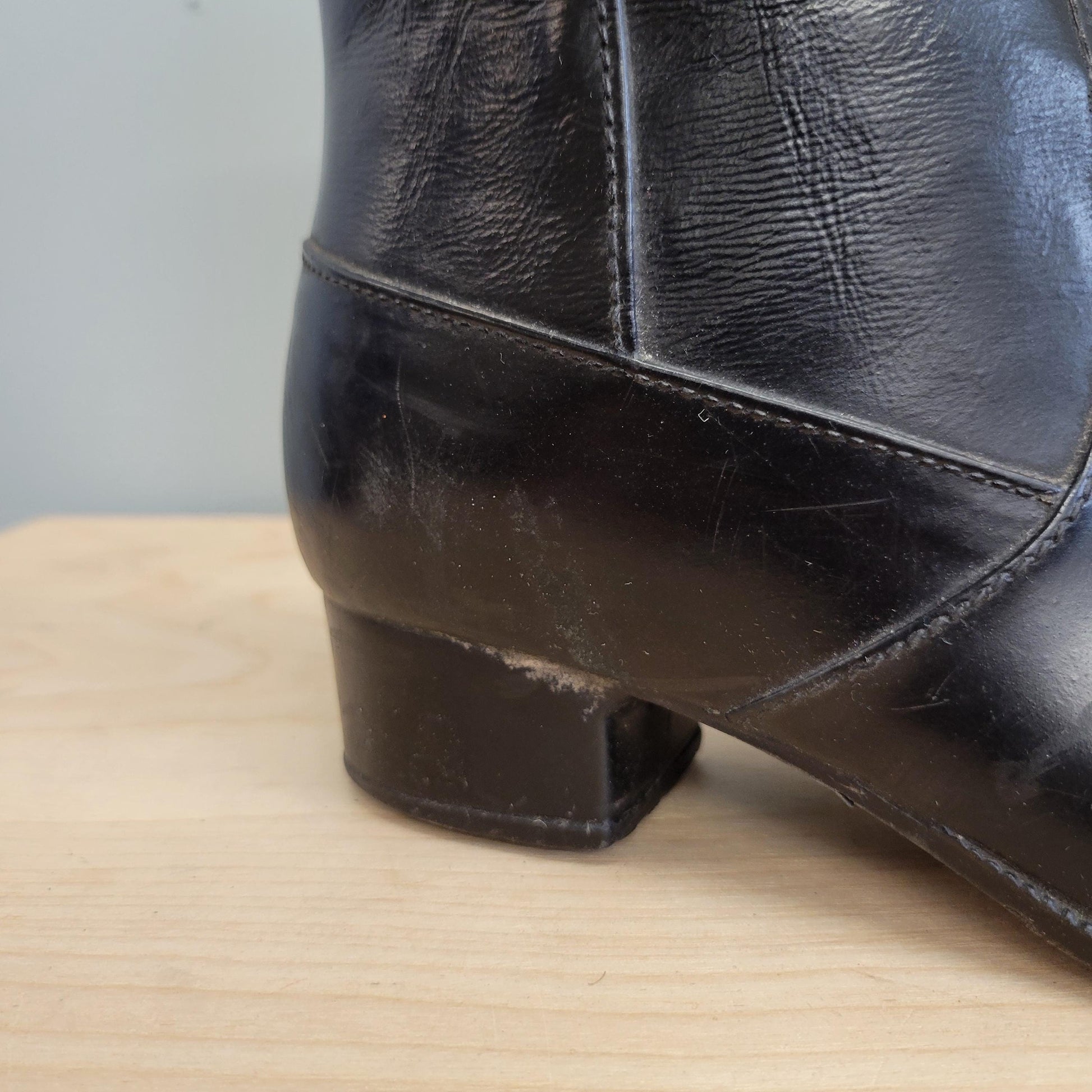 vtg 70s LEATHER ANKLE BOOTS // vintage black lined waterproof rain boot fancy winter snow boots size 7 mod beatle boot stylish retro autumn