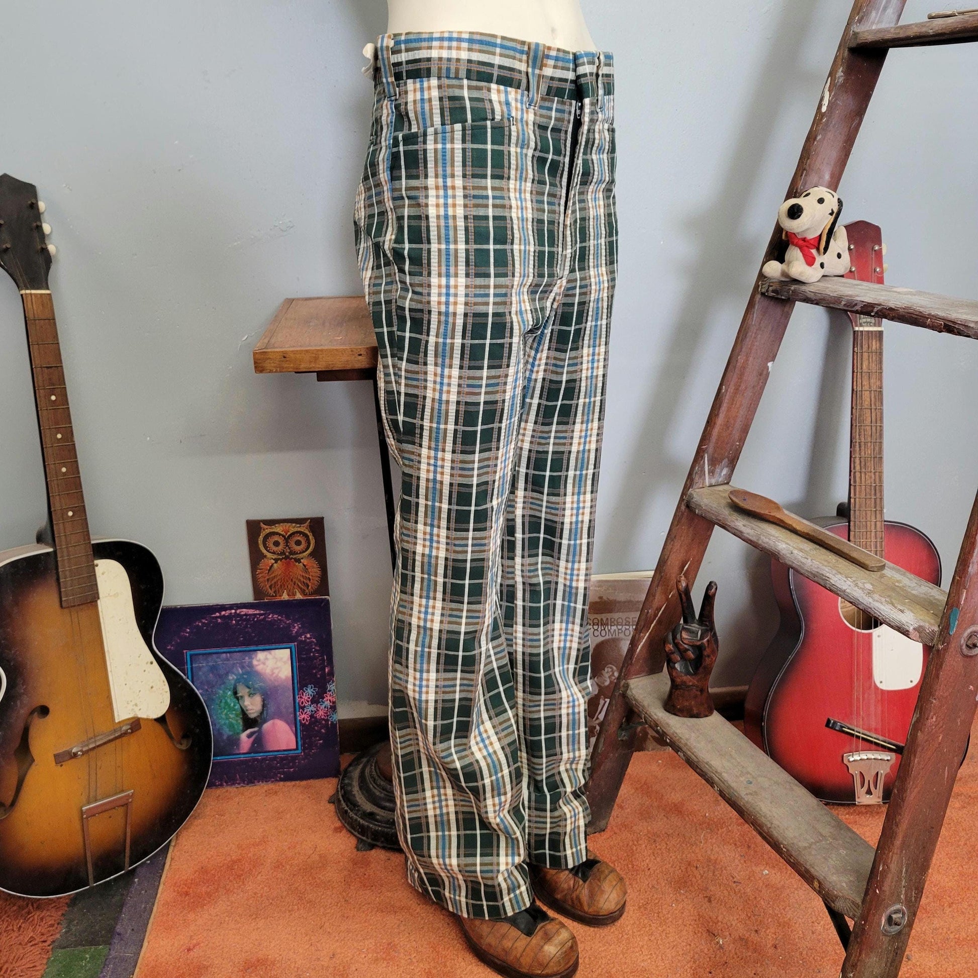 vtg 70s LEE PLAID PANTS // vintage 32 mens bell bottoms wide leg flare pants retro hippie disco high rise mens trousers autumn winter style