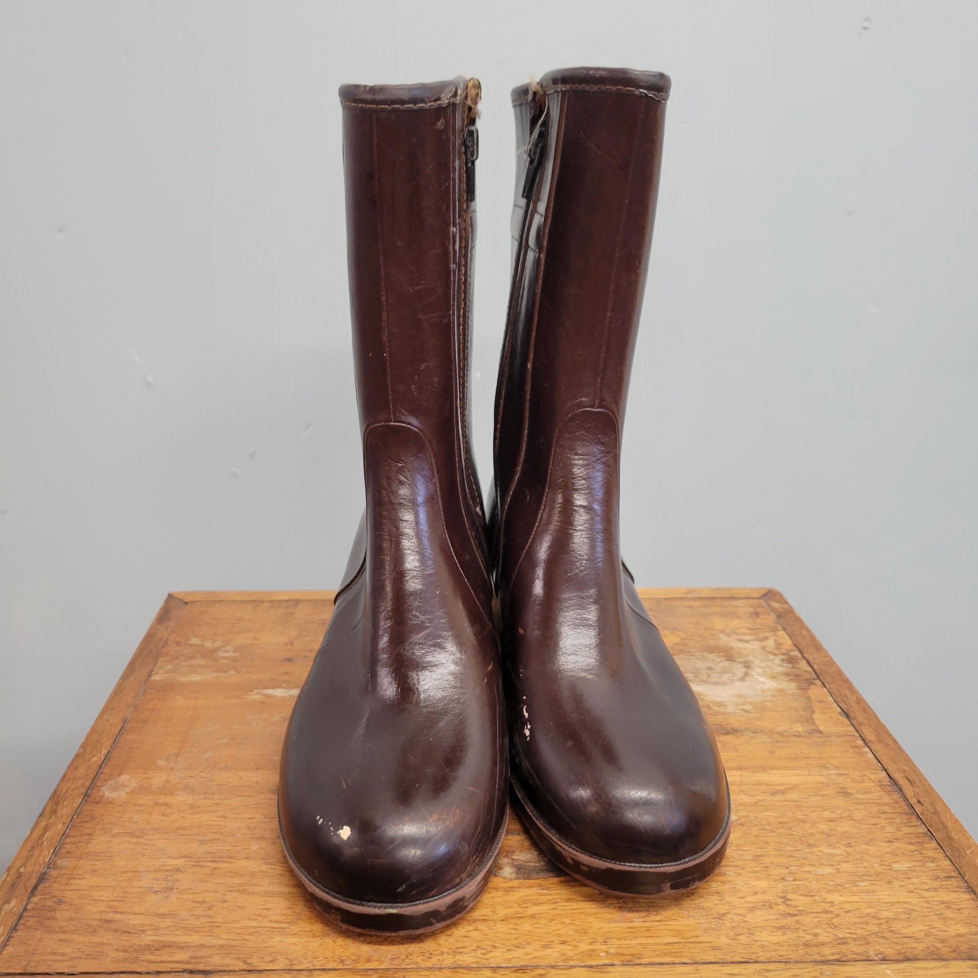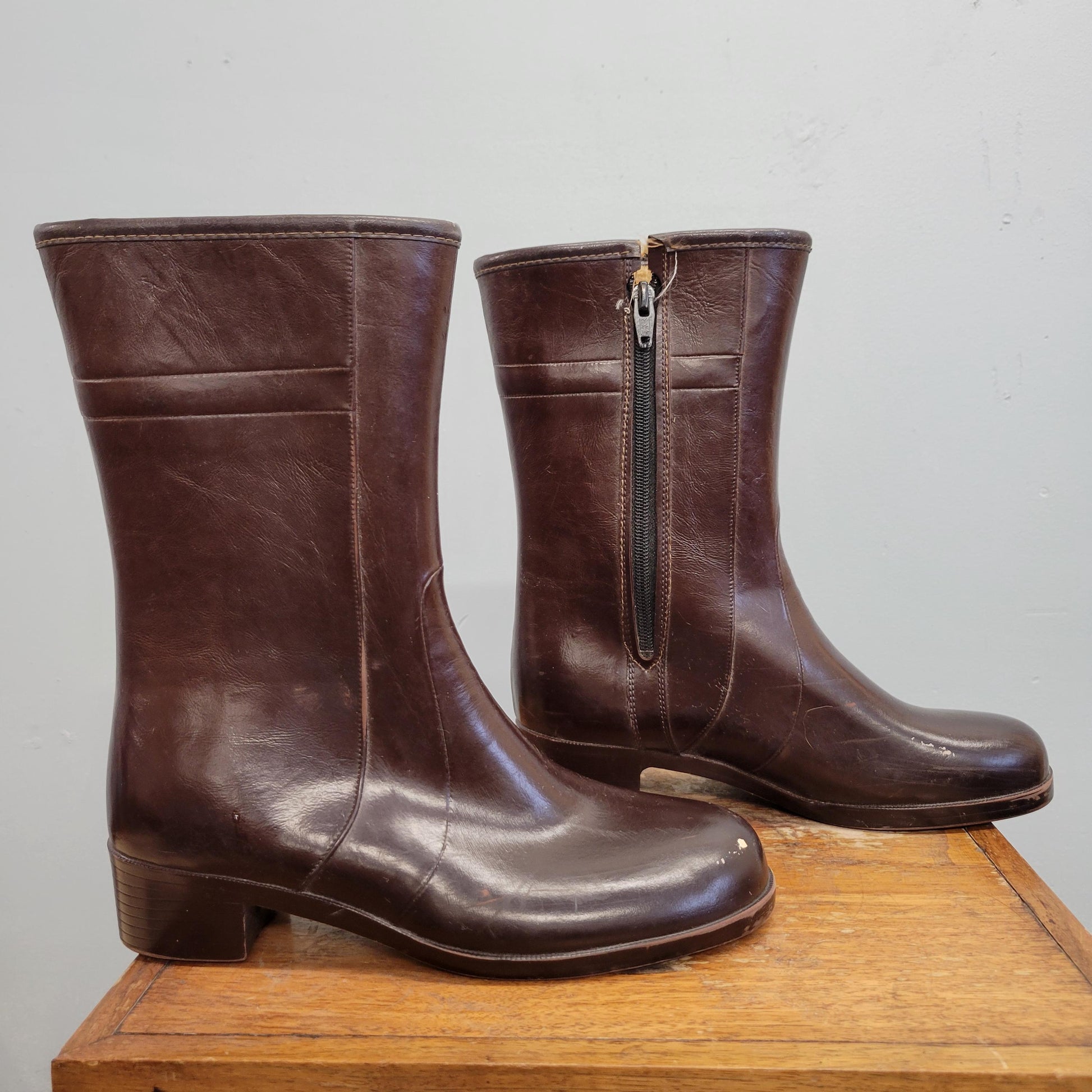 vtg 70s LINED WINTER BOOTS // vintage retro sherpa brown leather ankle boots rubber rain boots sleek chic snow boots autumn outfit mod style