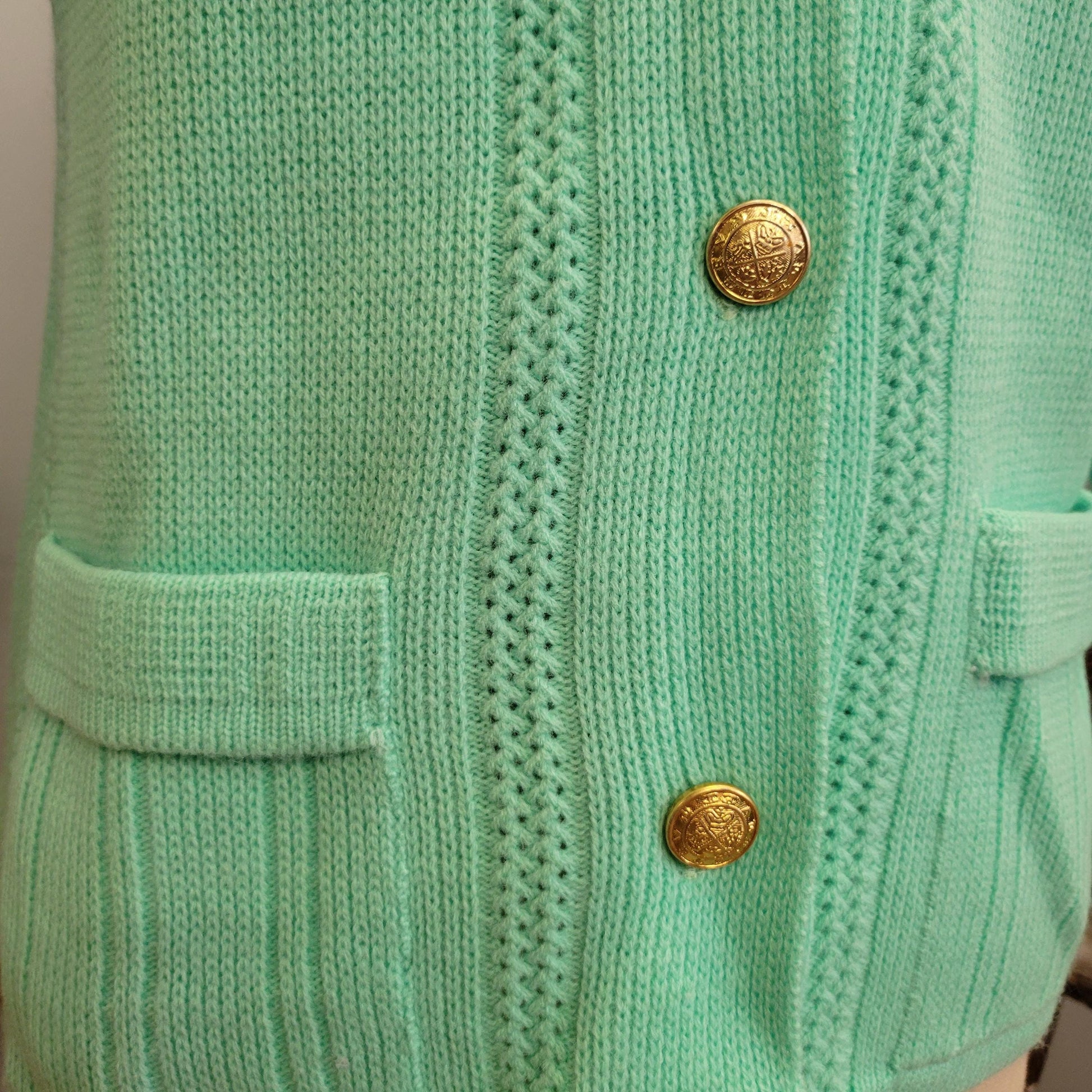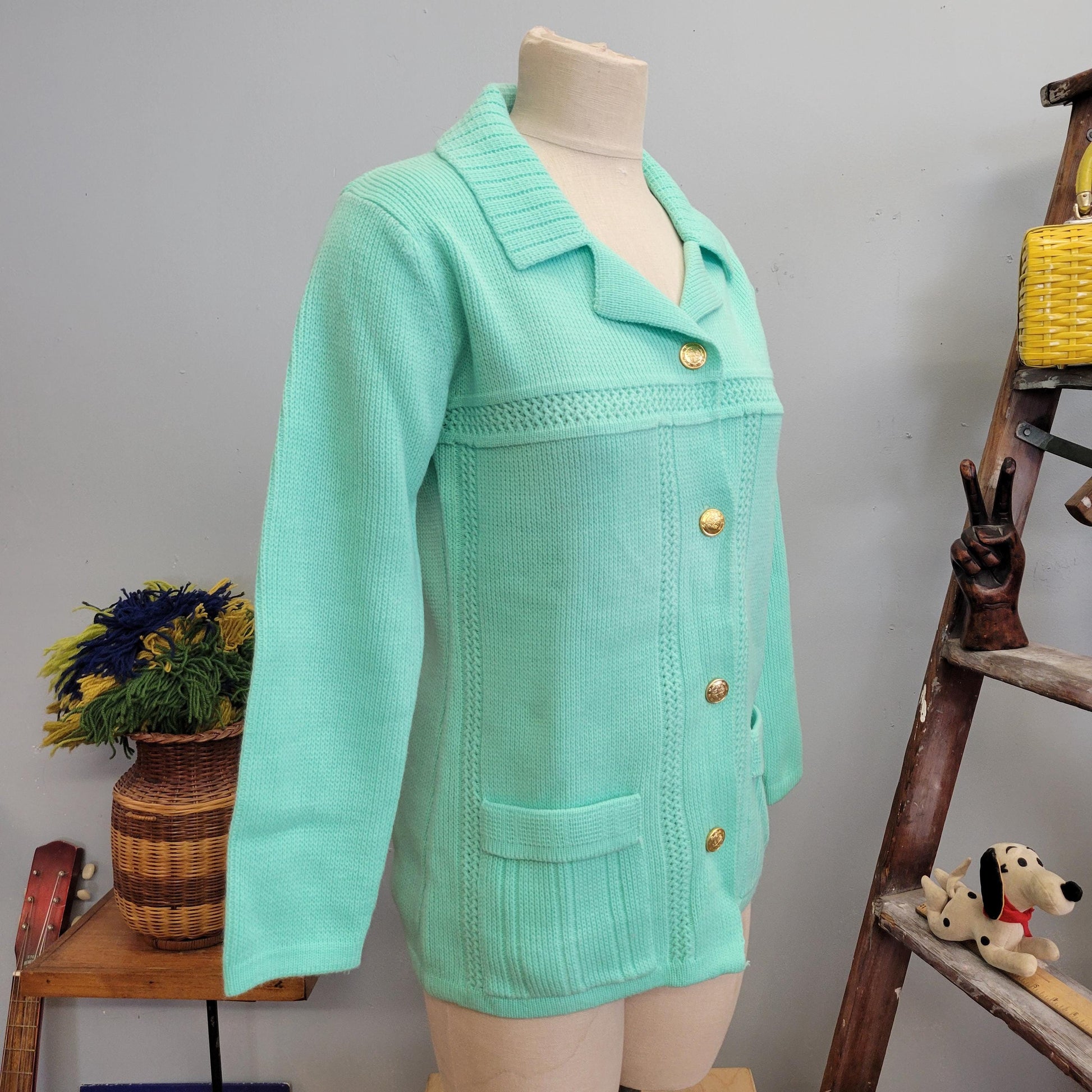 vtg 70s MONTGOMERY WARD SWEATER Jacket // vintage medium seafoam green collared retro knit womens blazer pastel acrylic structured suit top