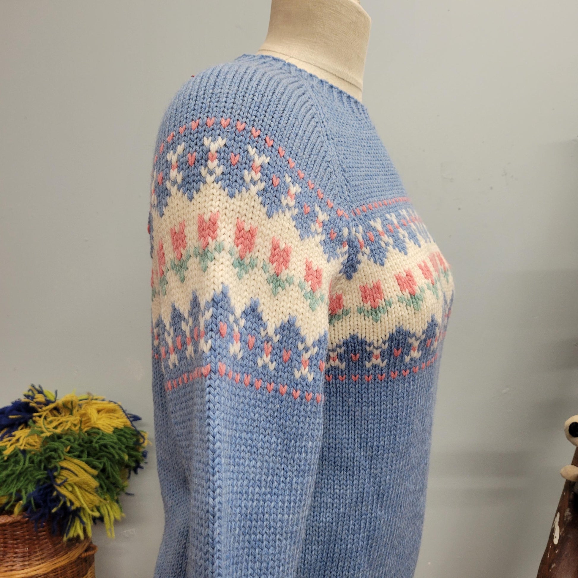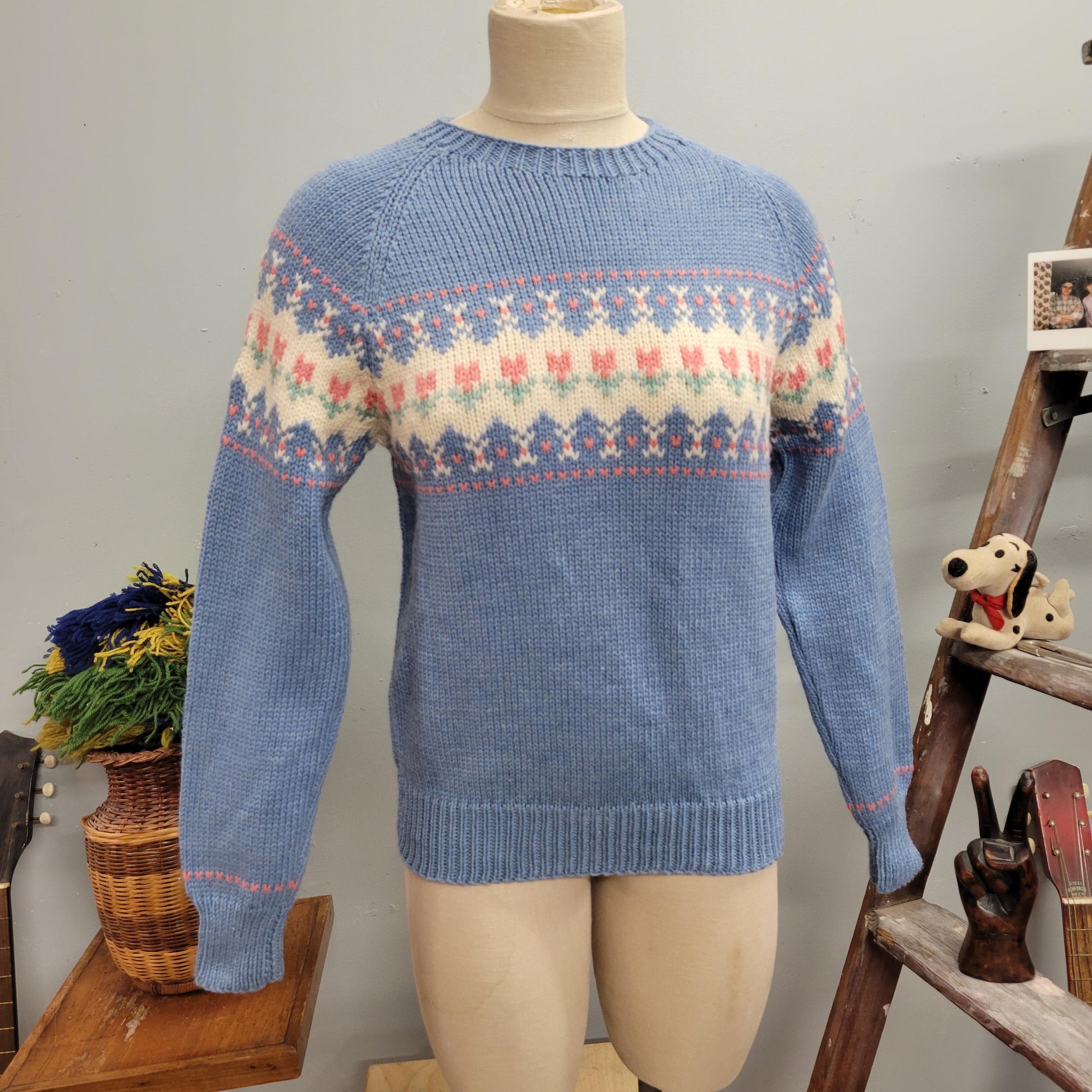 vtg 70s PASTEL BLUE SWEATER // vintage mary knits wool