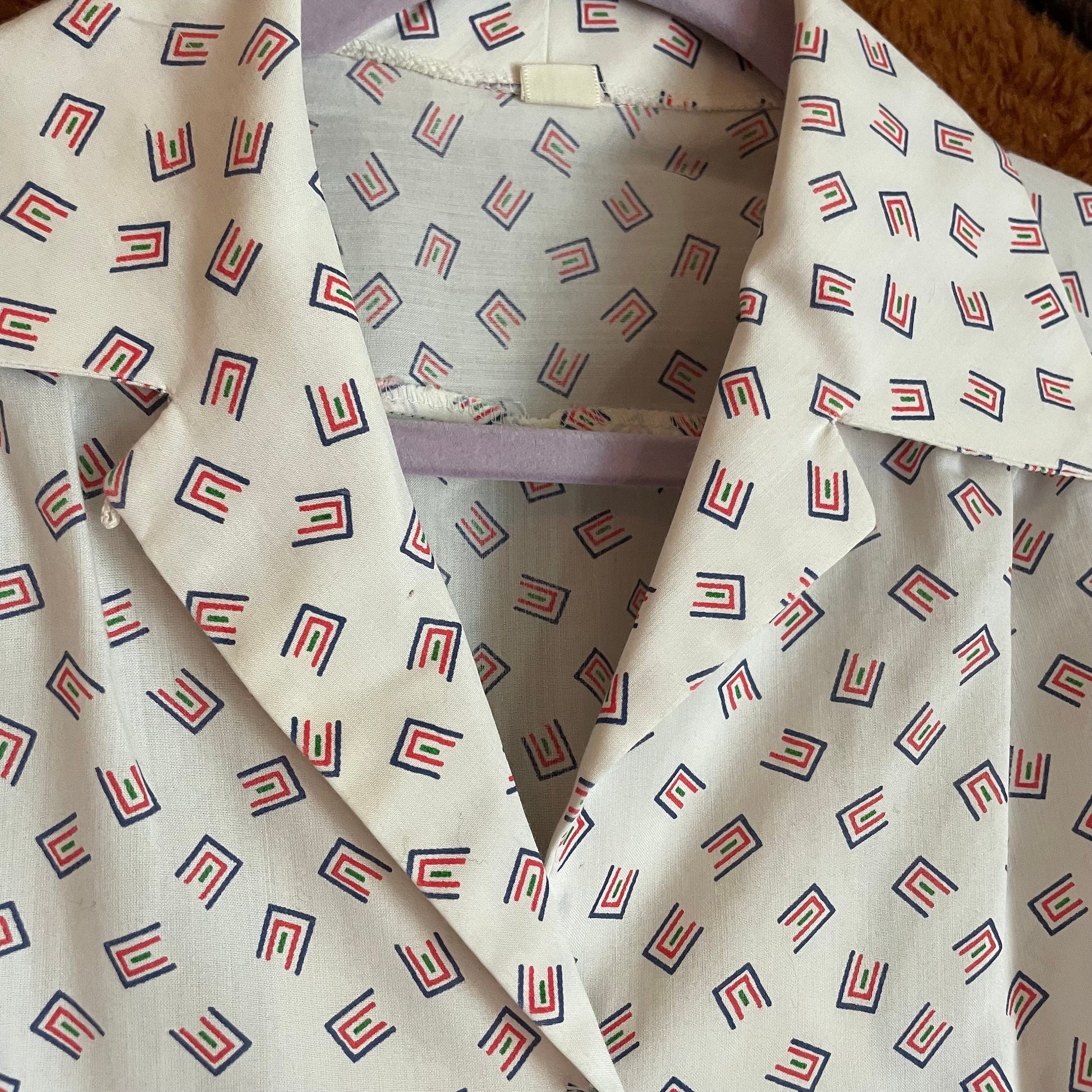 vtg 70s PATTERNED BODYSUIT TOP // vintage pointy collar one piece unitard disco poly d'armigene new york blouse abstract atomic print shirt