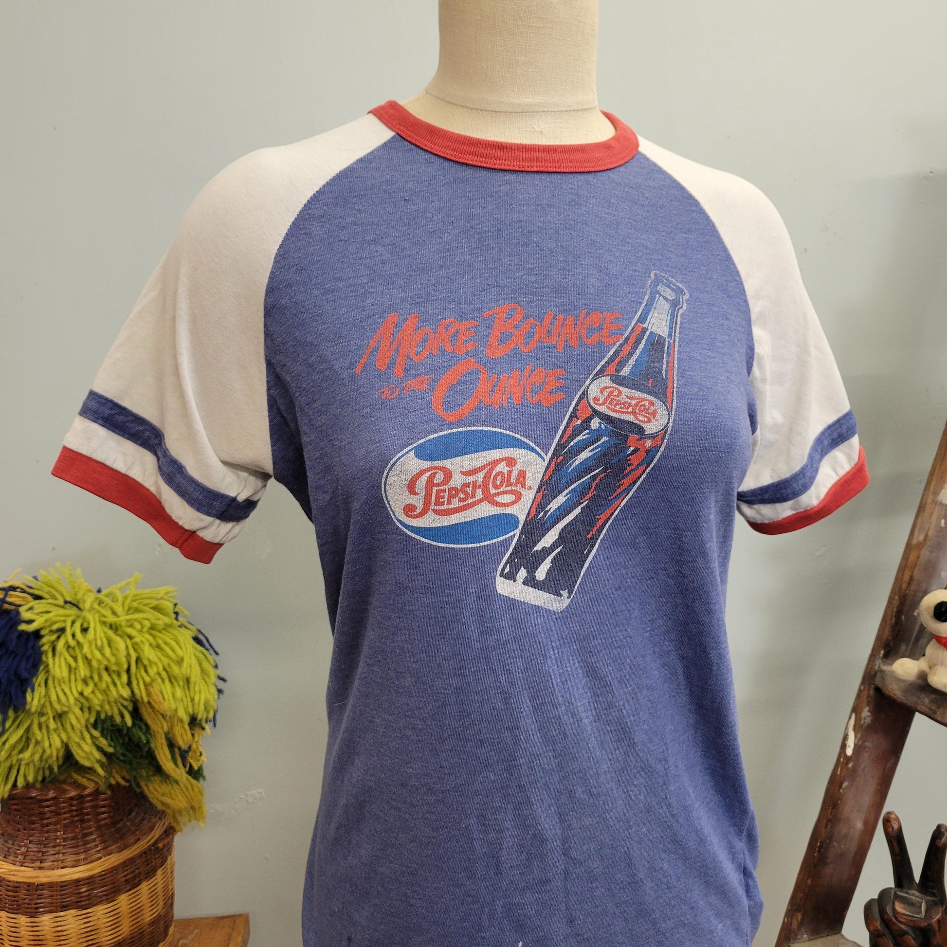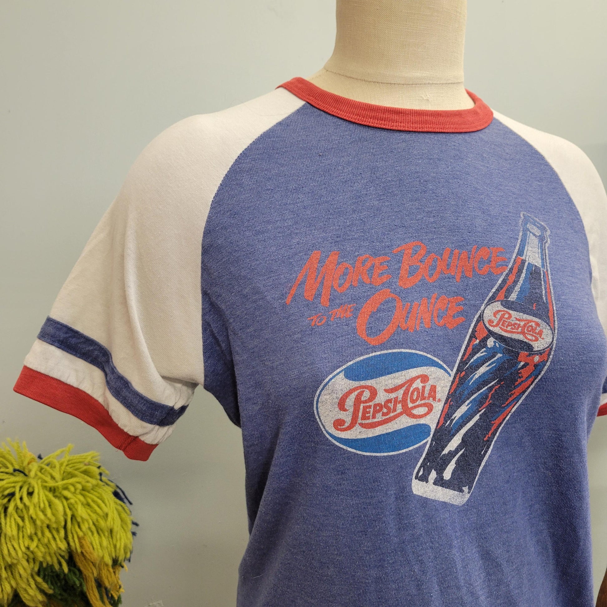 vtg 70s PEPSI COLA RINGER tee // vintage paper thin soft striped retro soda pop “more bounce to the ounce” funny slogan graphic t shirt