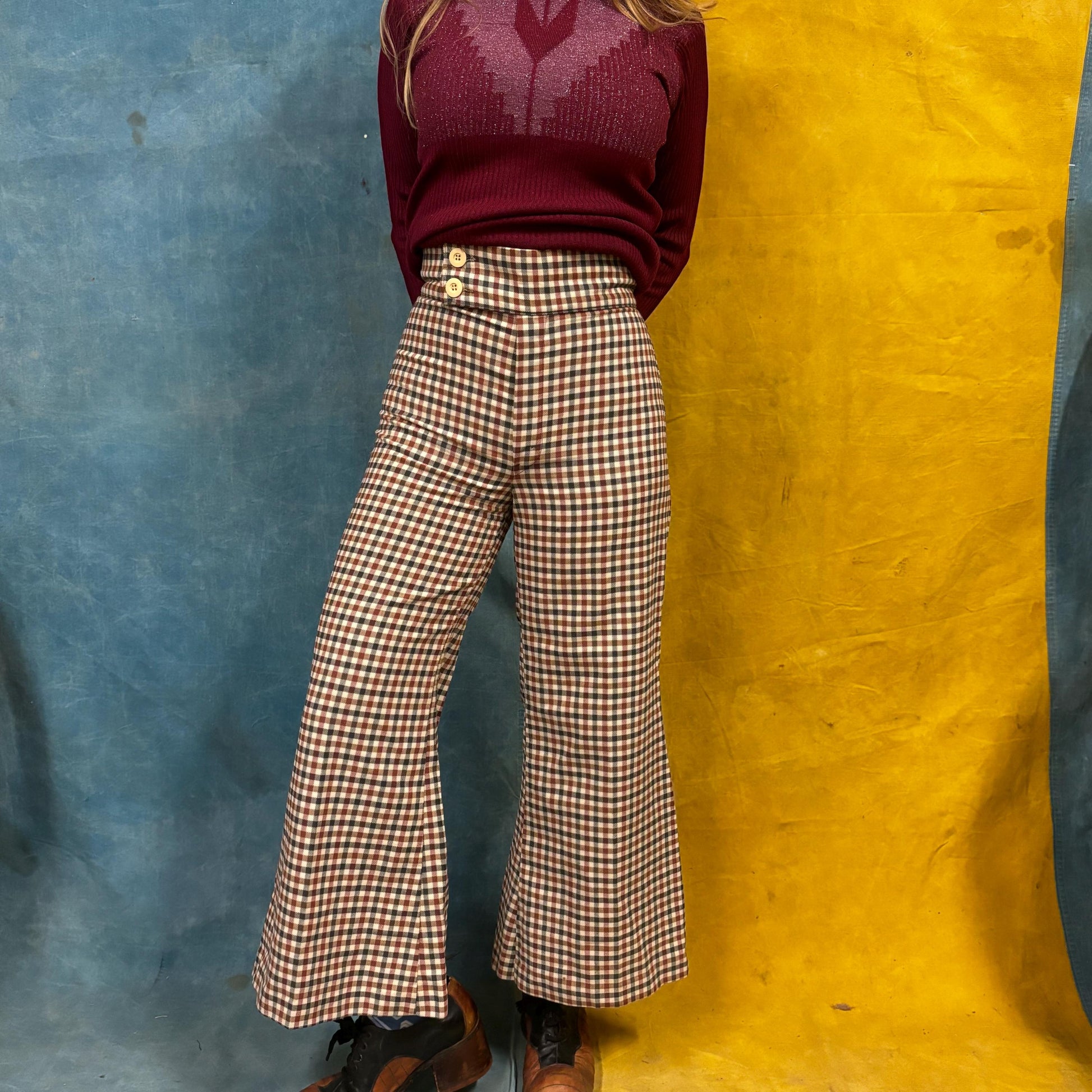 vtg 70s PLAID BELL BOTTOMS // vintage 26 women’s super high waisted flare pants retro hippie mod style autumn preppy winter fashion wide leg