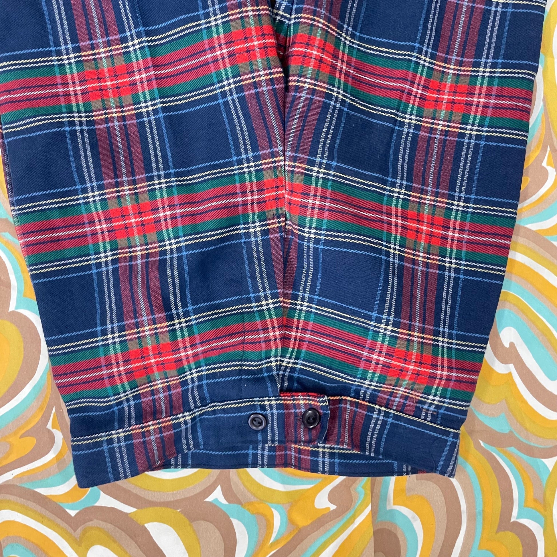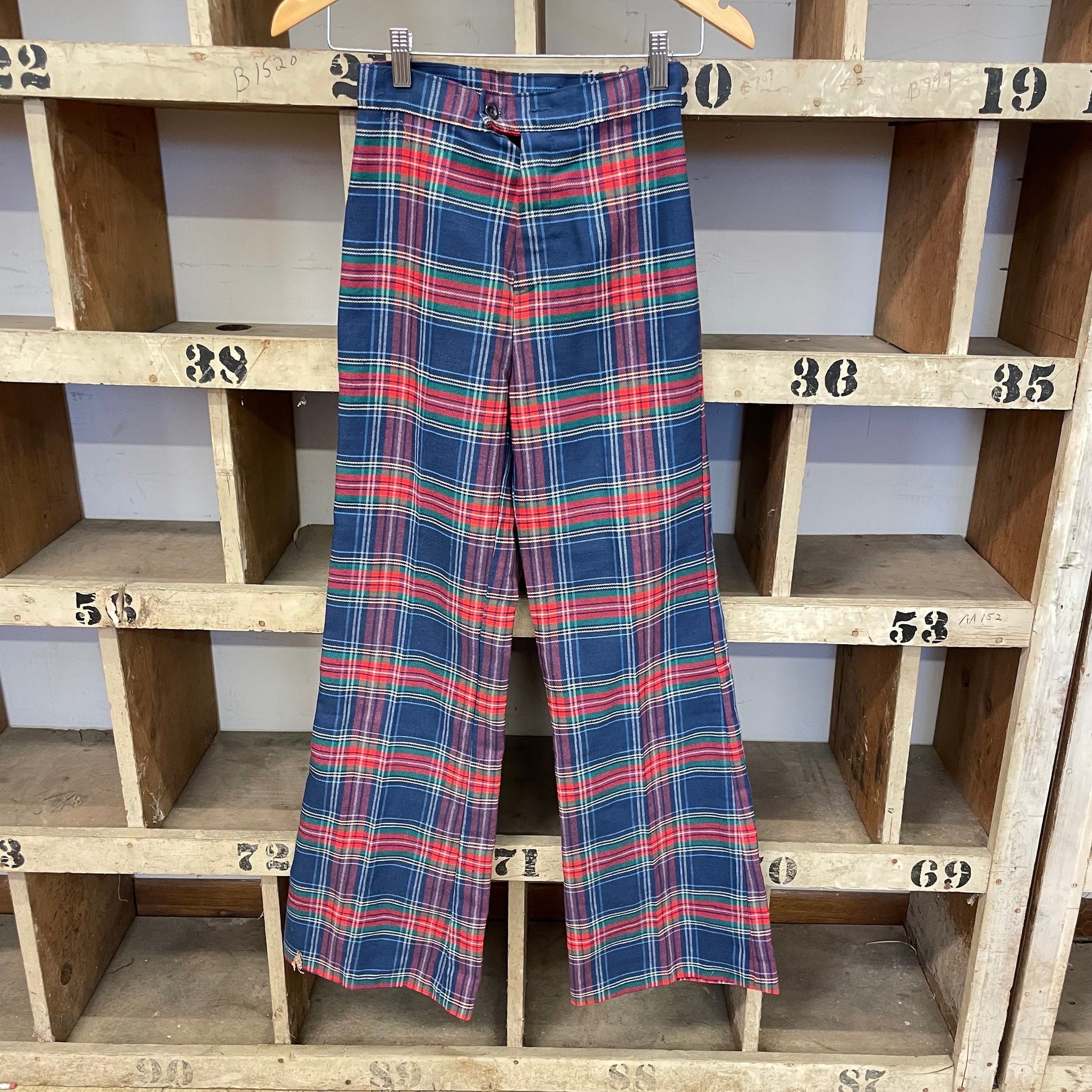 Vintage 70s blue & red plaid high waisted Bell Bottoms