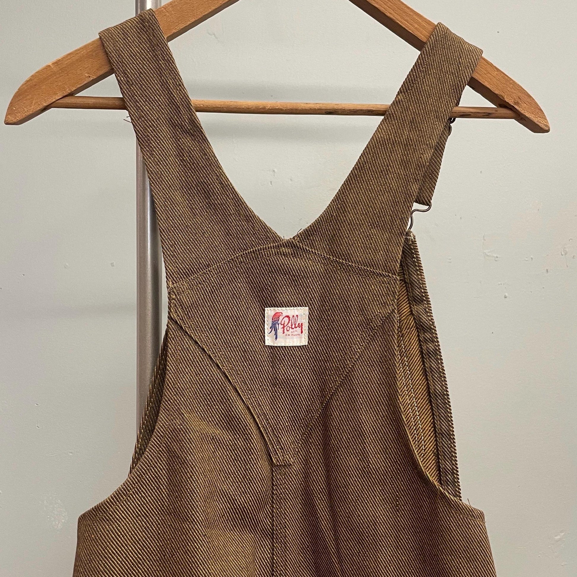 vtg 70s POLLY OVERALL SHORTS // goldish brown petite workwear coveralls jants camo rugged hunter carhartt style retro playsuit romper denim