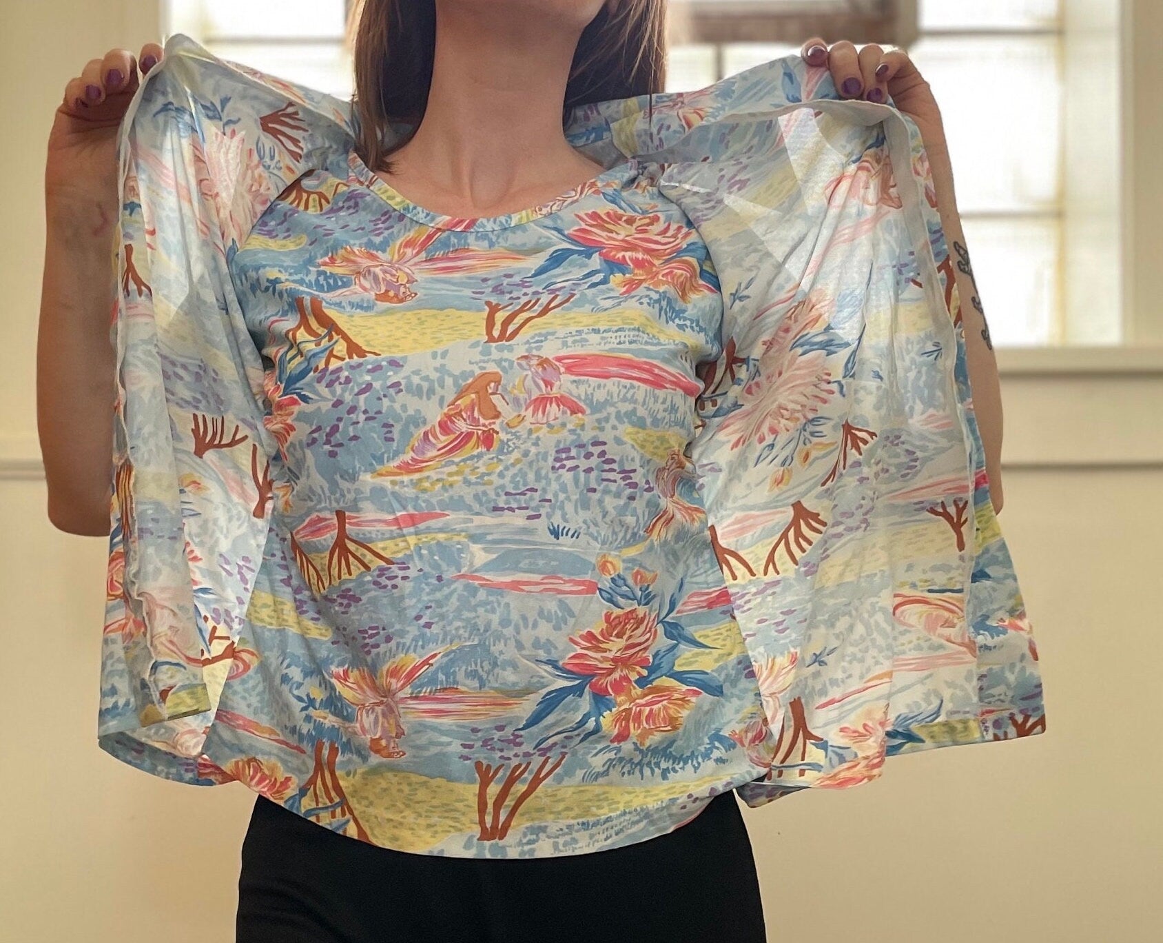 Vintage 70s Psychedelic Top / Layered Button Up Retro Top