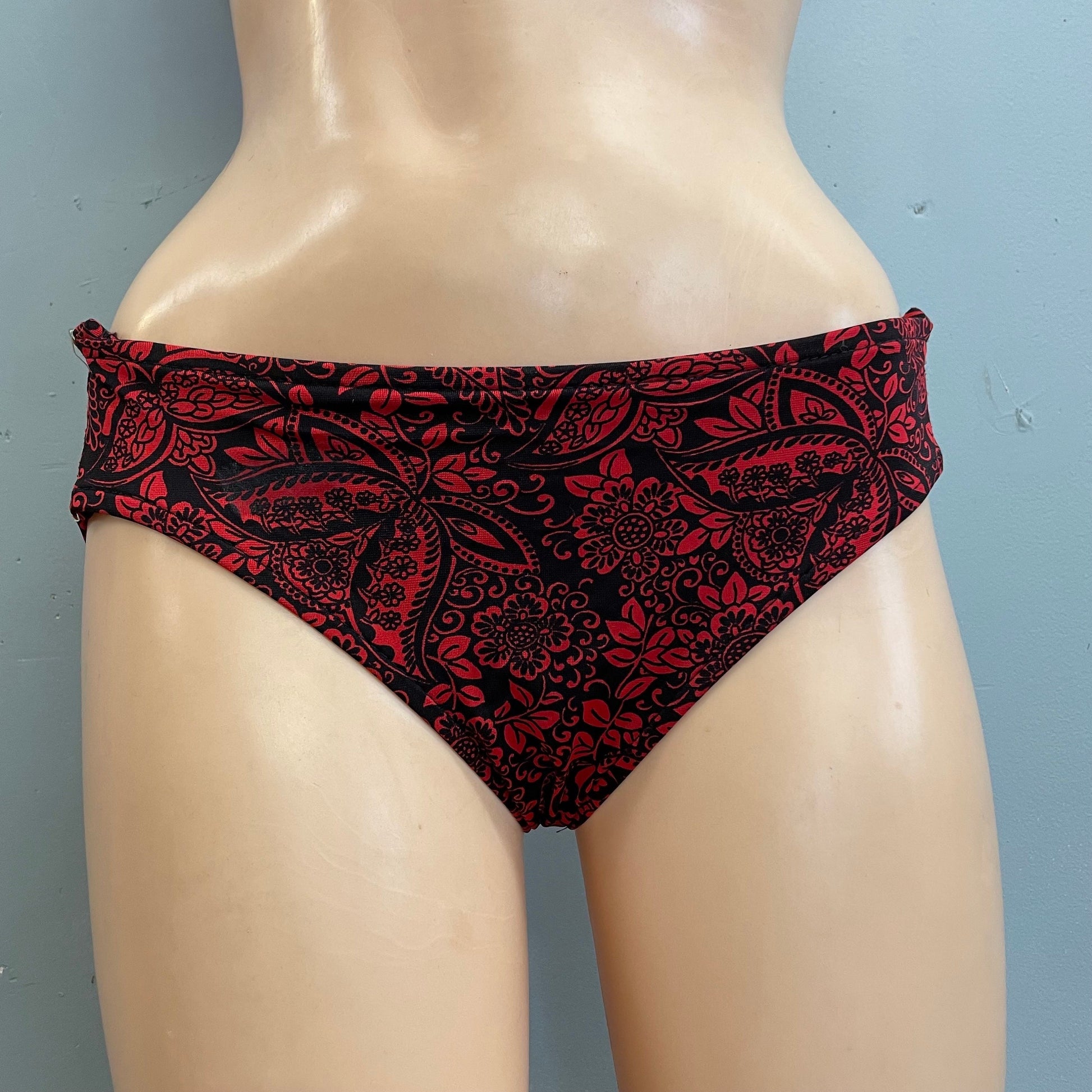 vtg 70s red & black 2 piece Catalina bikini set sexy halter low rise swimsuit psychedelic floral bathing suit beach pool party summer top