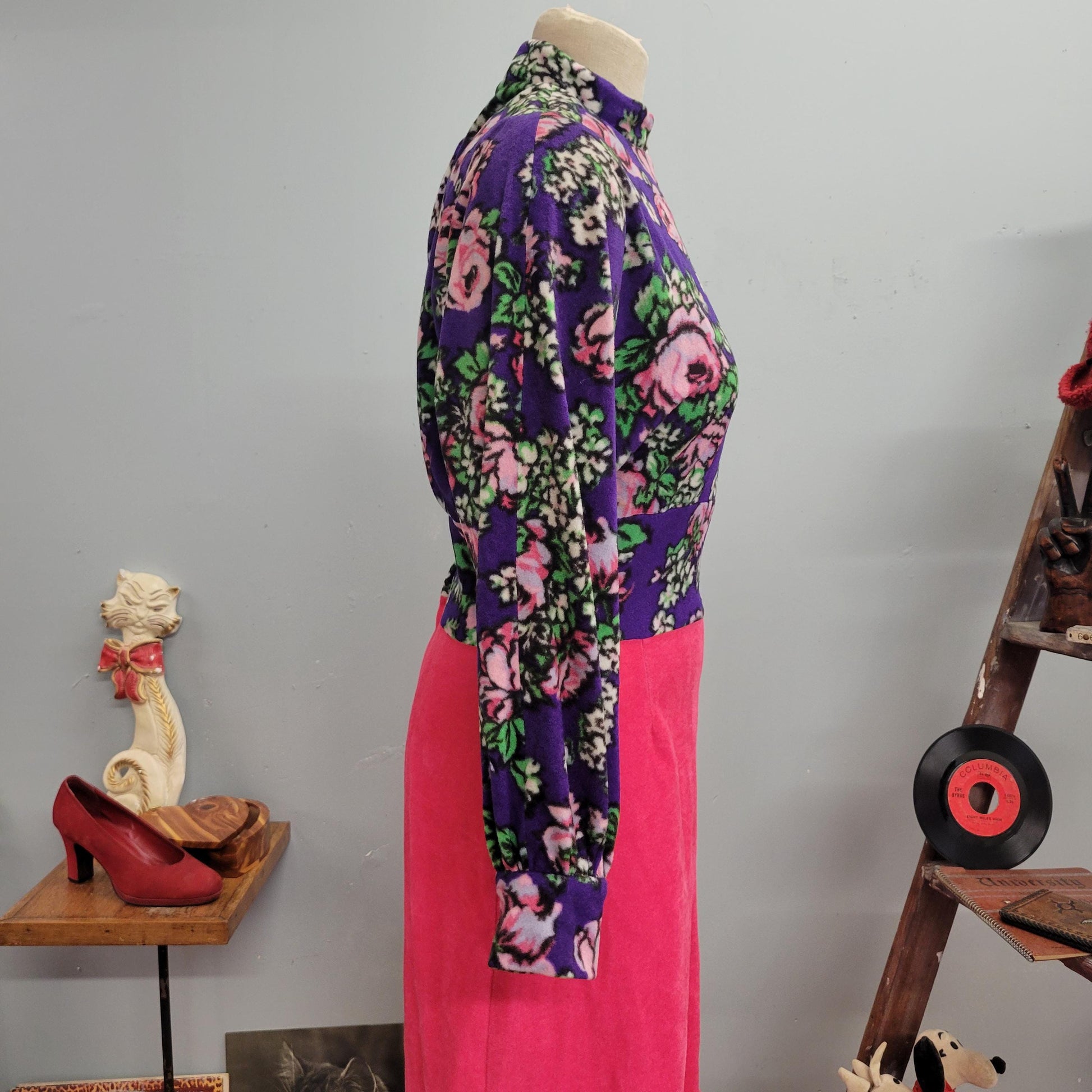 vtg 70s SOFT FLORAL DRESS // vintage bat wing sleeve women’s medium floral pattern fleece autumn tones sweater dress retro hippie mod funky