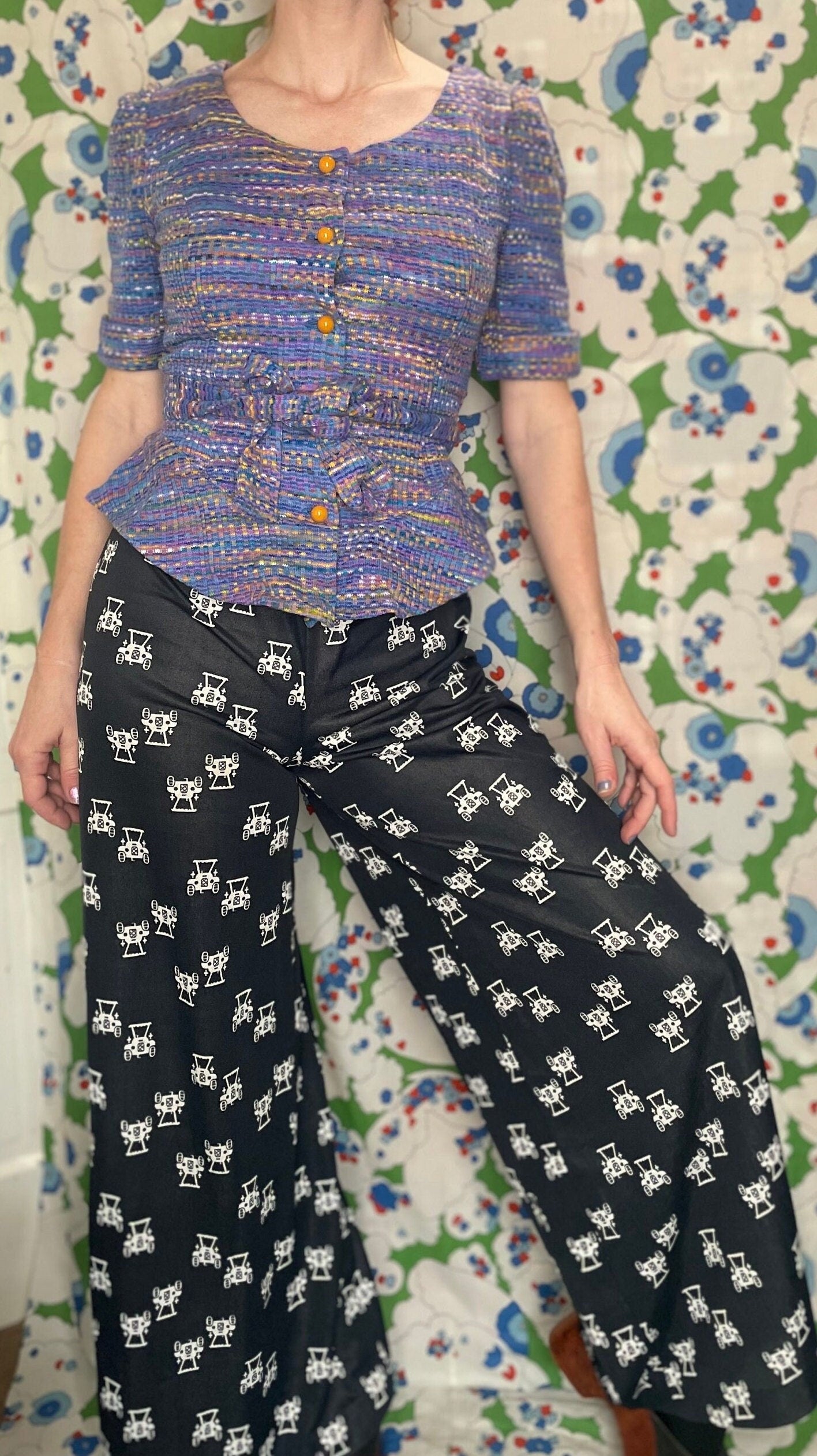 vtg 70s SPACE DYE TOP // vintage purple peplum belted mod hippie blouse pastel lavender psychedelic retro autumn fashion heathered funky top