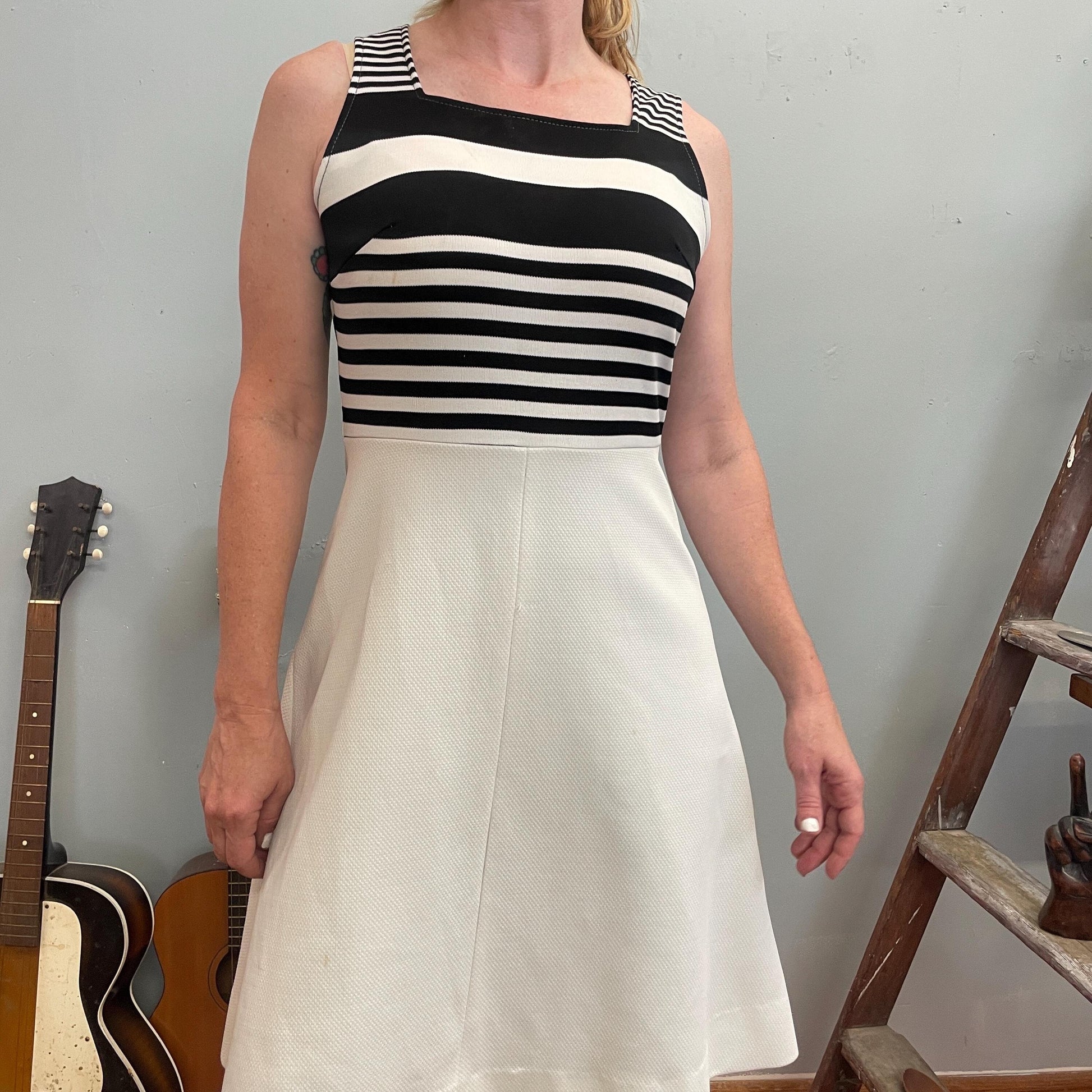vtg 70s STRIPED TANK DRESS // retro contrast two tone black & white mod a line tank dress layers fall autum flowy cute school outfit preppy
