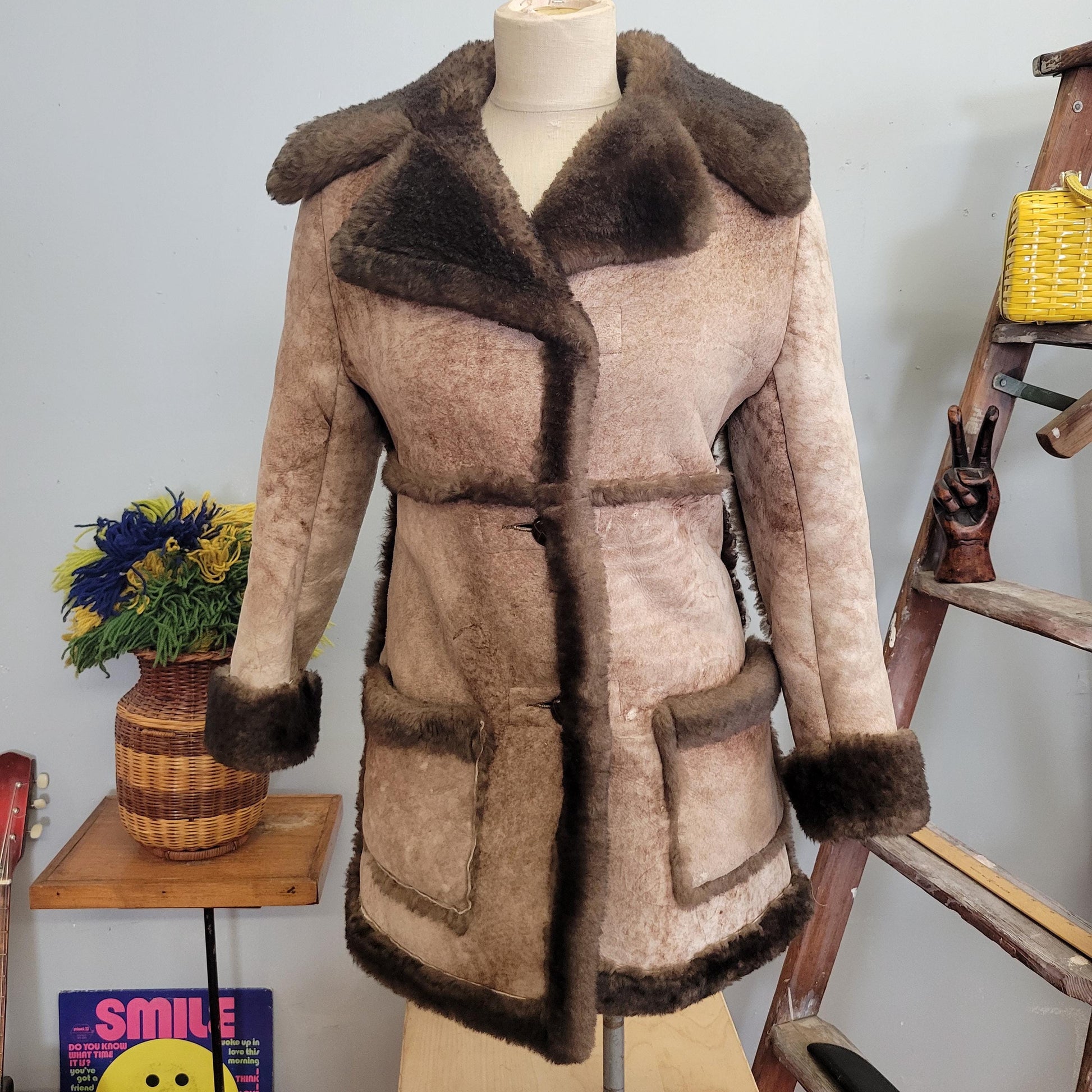 vtg 70s SUEDE FUR COAT // vintage ardney suede lamb size 10 shearling hide two tone penny lane fur trim button up winter overcoat suede lamb