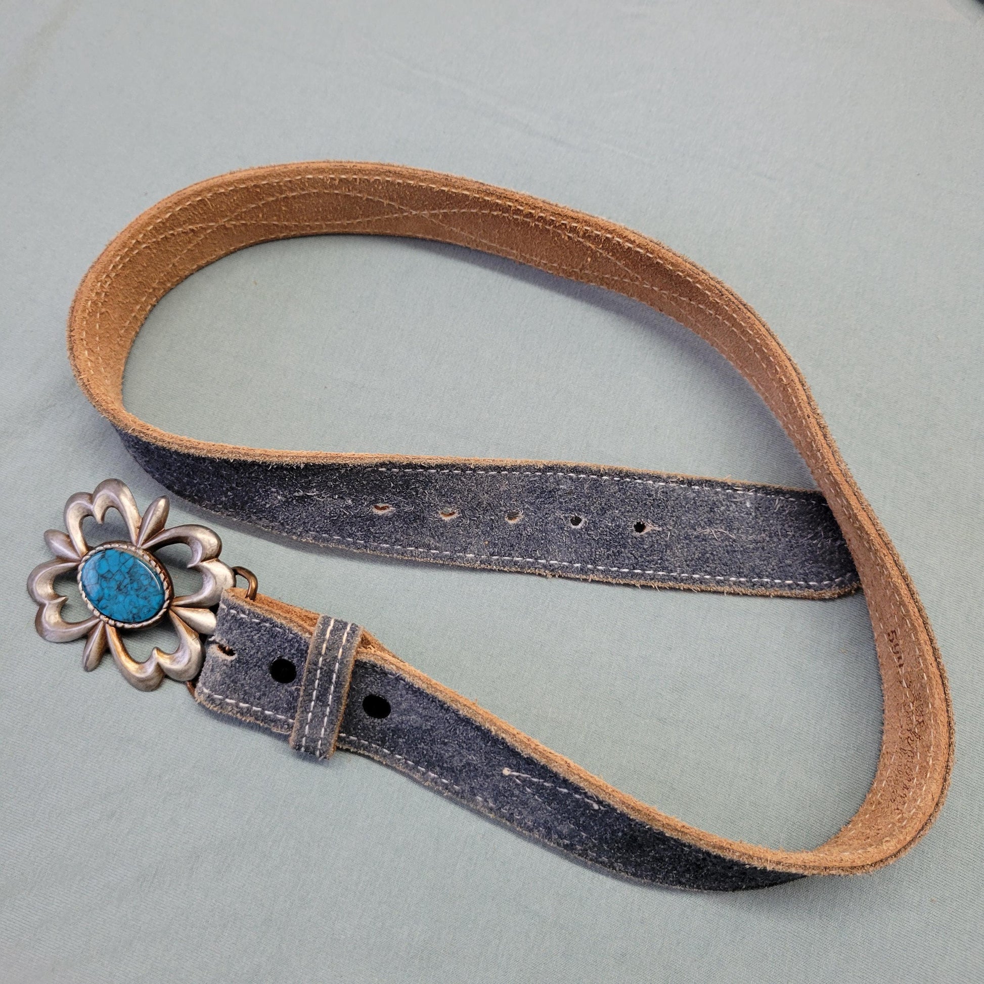 vtg 70s SUEDE TURQUOISE BELT // vintage accessory womens retro fashion blue leather flower power hippie boho autumn cute retro western style