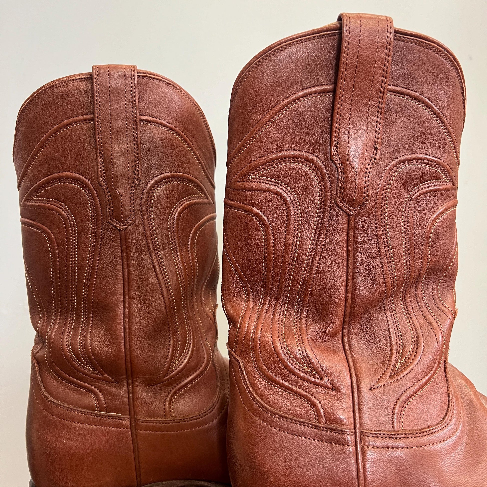 vtg 70s TECOVAS LEATHER BOOTS // vintage size 11 mens usa rich caramel brown leather pointy toe western style cowboy boots hippie biker