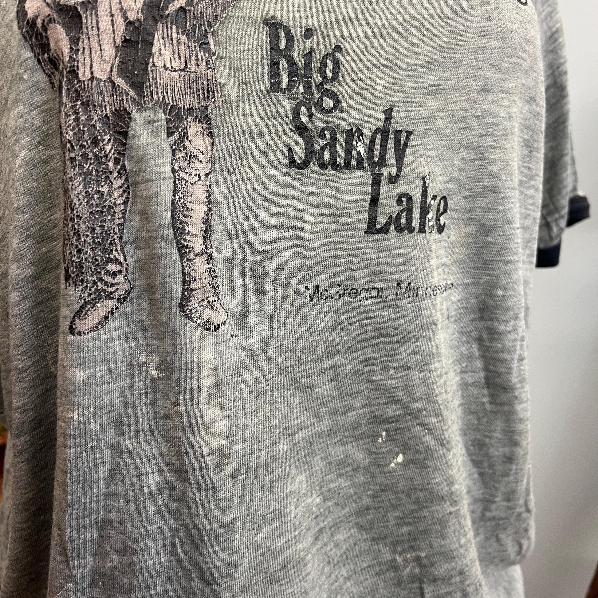 vtg 70s TRADERS POST TSHIRT // vintage distressed ringer hanes xl big sardy lake minnesota paper thin oversized paint rugged thrashed artist