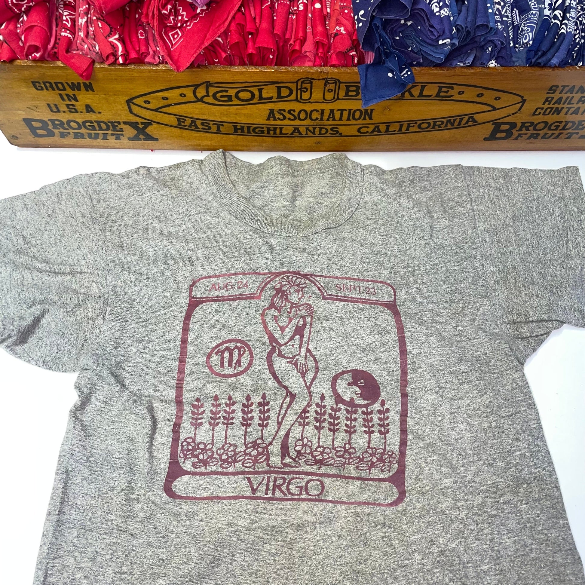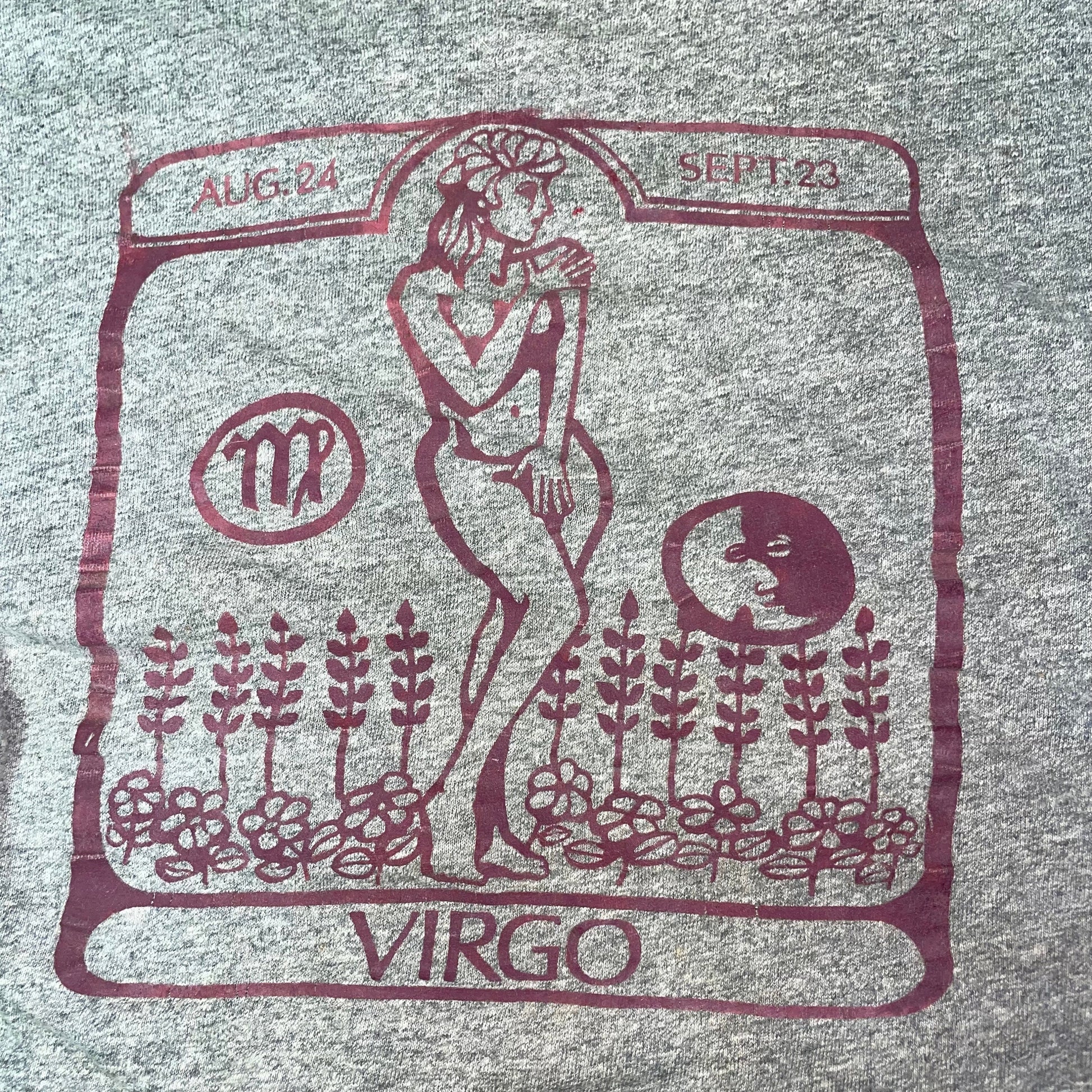vtg 70s ZODIAC VIRGO TSHIRT // french cut horoscope iron on graphic tee distressed grey hippie new age celestial soft thin graphic tee