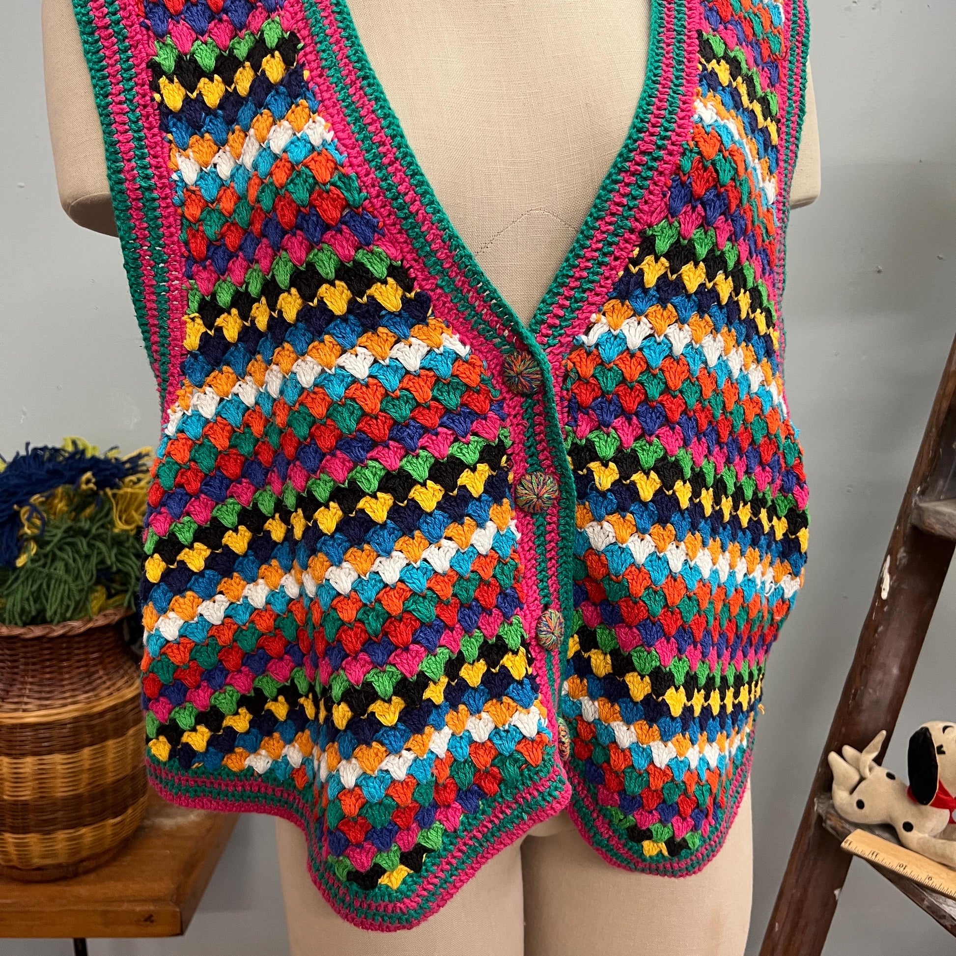 vtg 80s ABSTRACT SWEATER VEST // vintage claus woman size 2 oversized slouchy rainbow chunky knit retro chevron vneck layer top bright funky