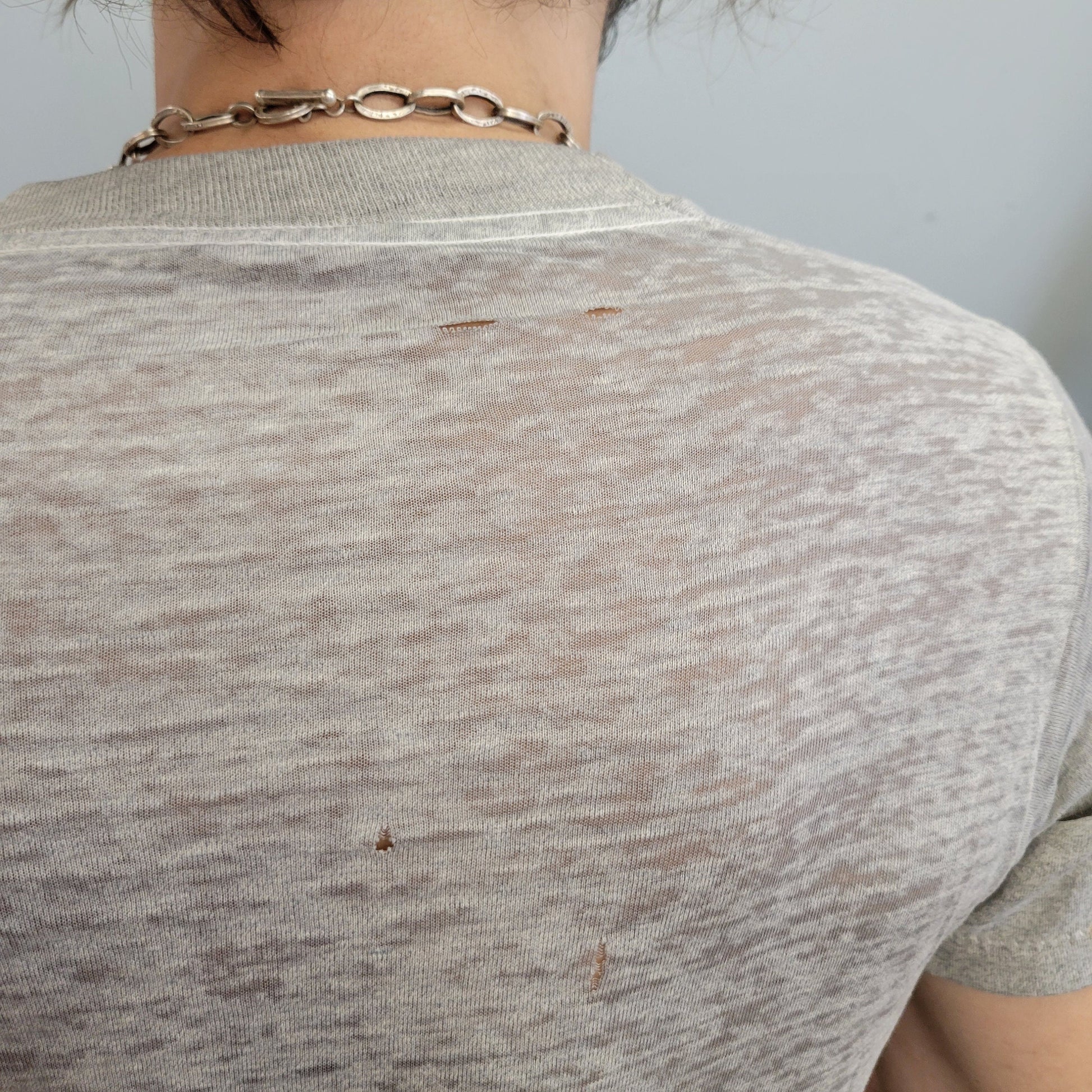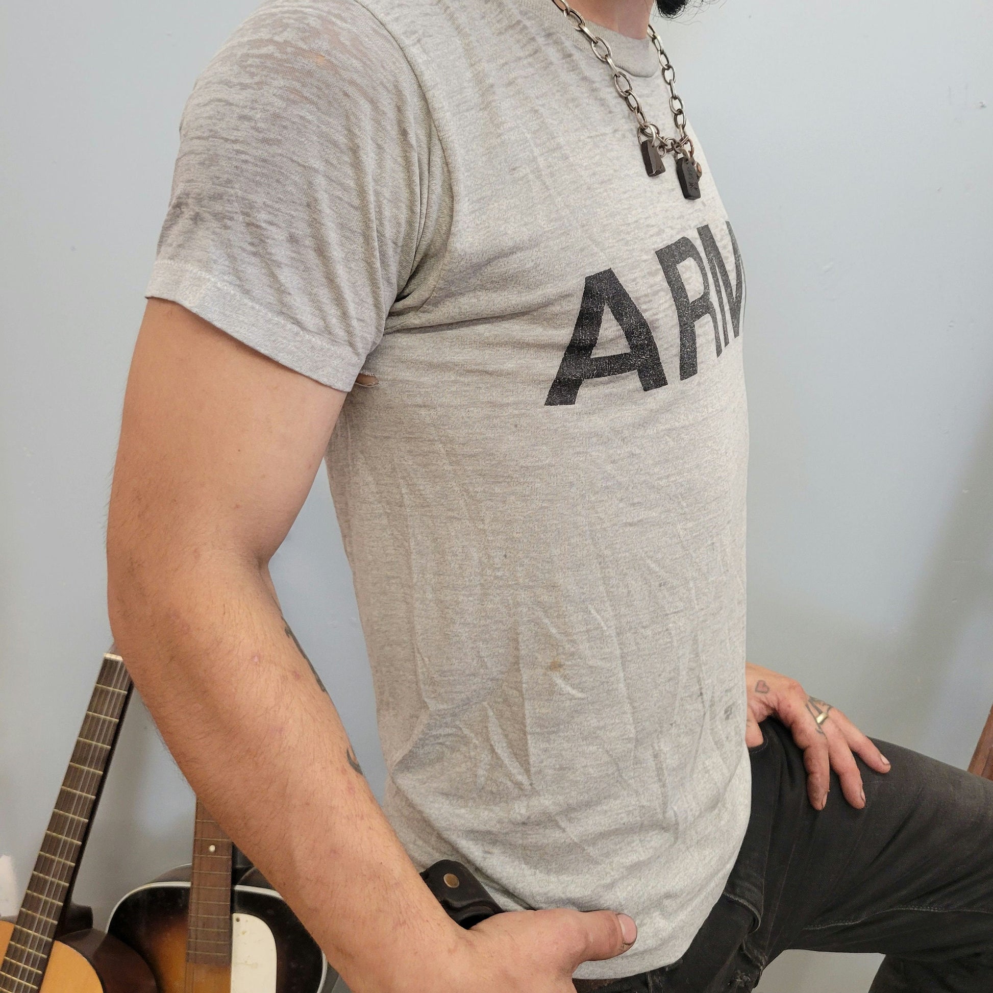 vtg 80s ARMY PAPER THIN tshirt // vintage single stitch usmc united states distressed gym workout faded broken holes tears transparent
