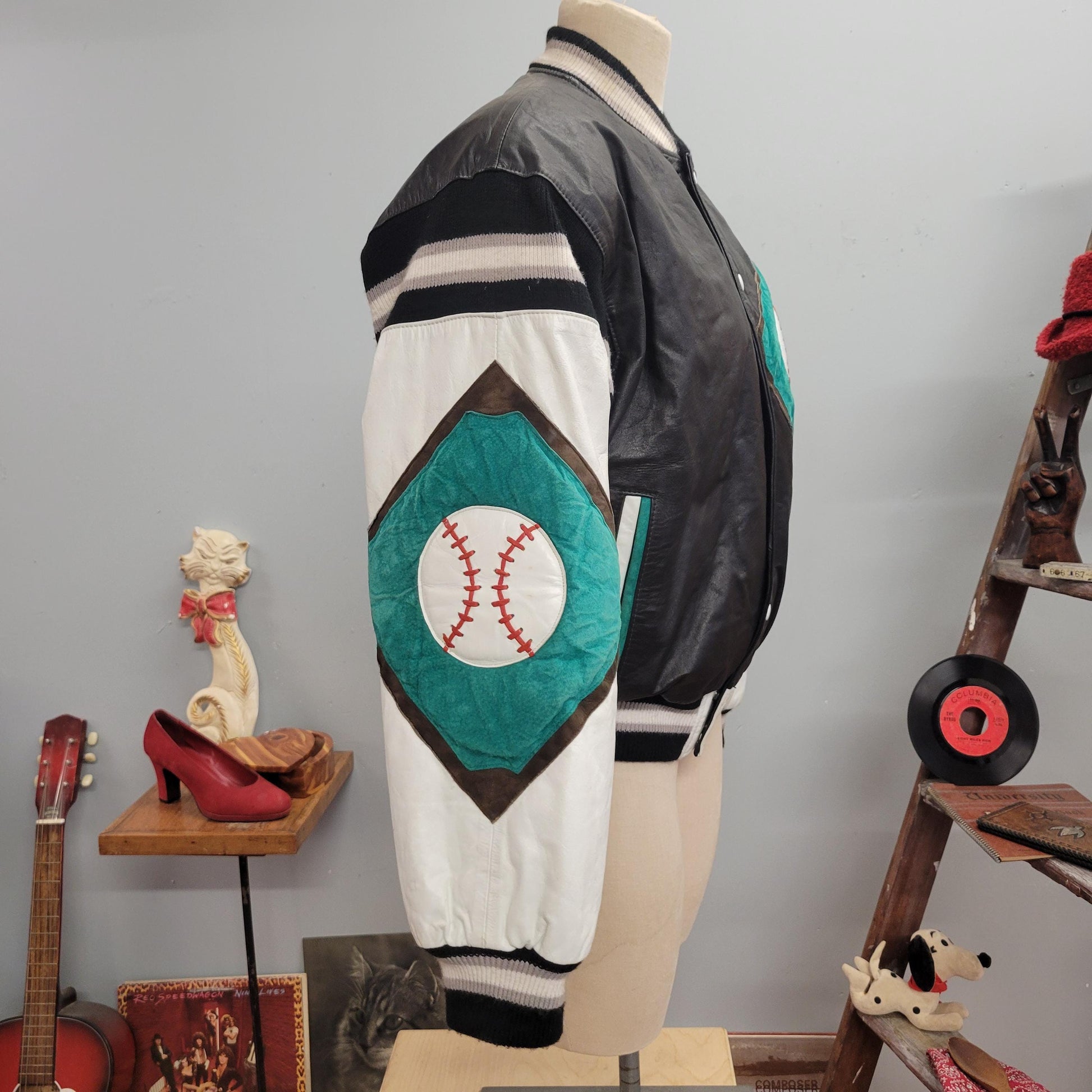 vtg 80s BASEBALL LEATHER JACKET // vintage le piel genuine leather small mens Michael Hoban style americas favorite past time retro bomber