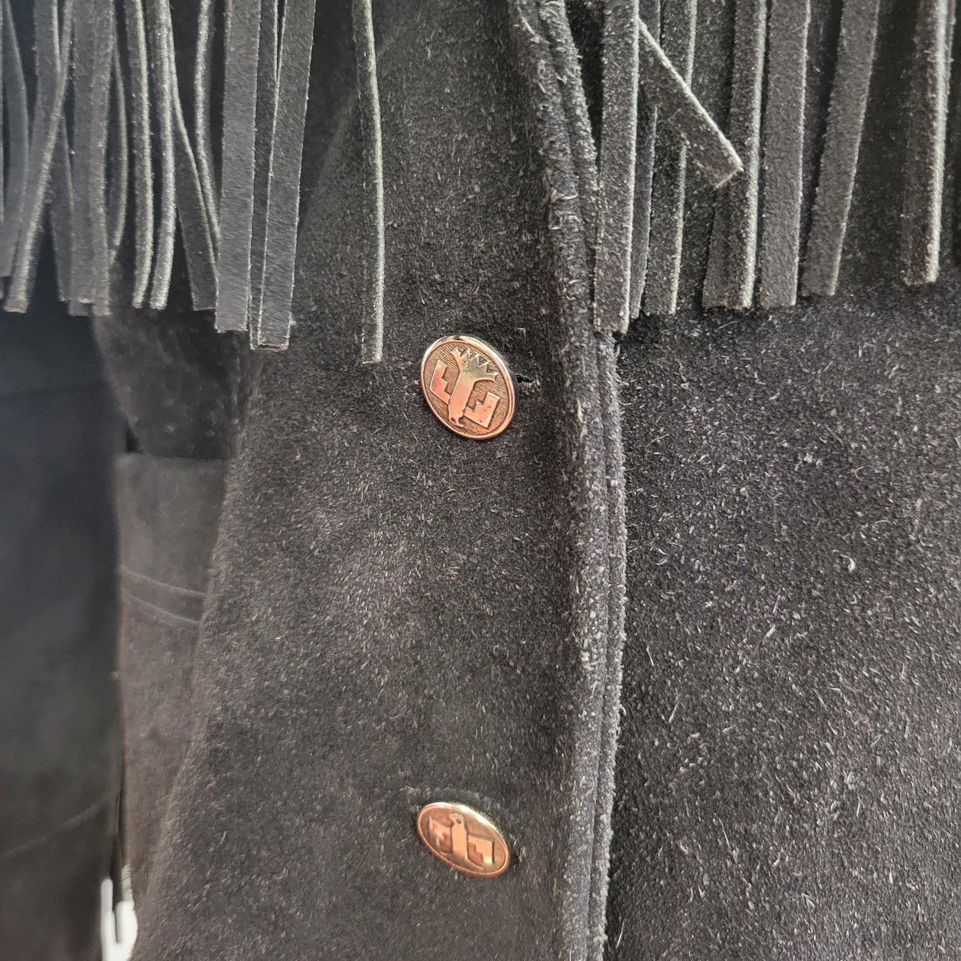 vintage worn in sturdy black suede women’s black fringe cropped jacket