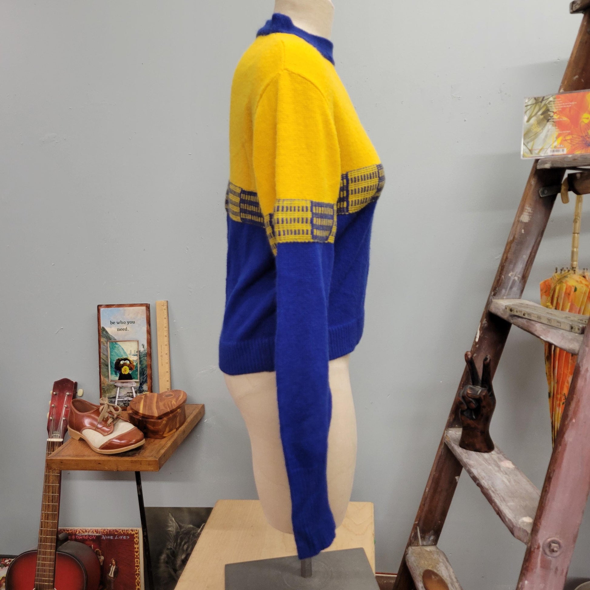 vtg 80s BUILDINGS PATTERN SWEATER // vintage genuine kandel 38 acrylic two tone abstract city skyline embroidered varsity cheerleader style