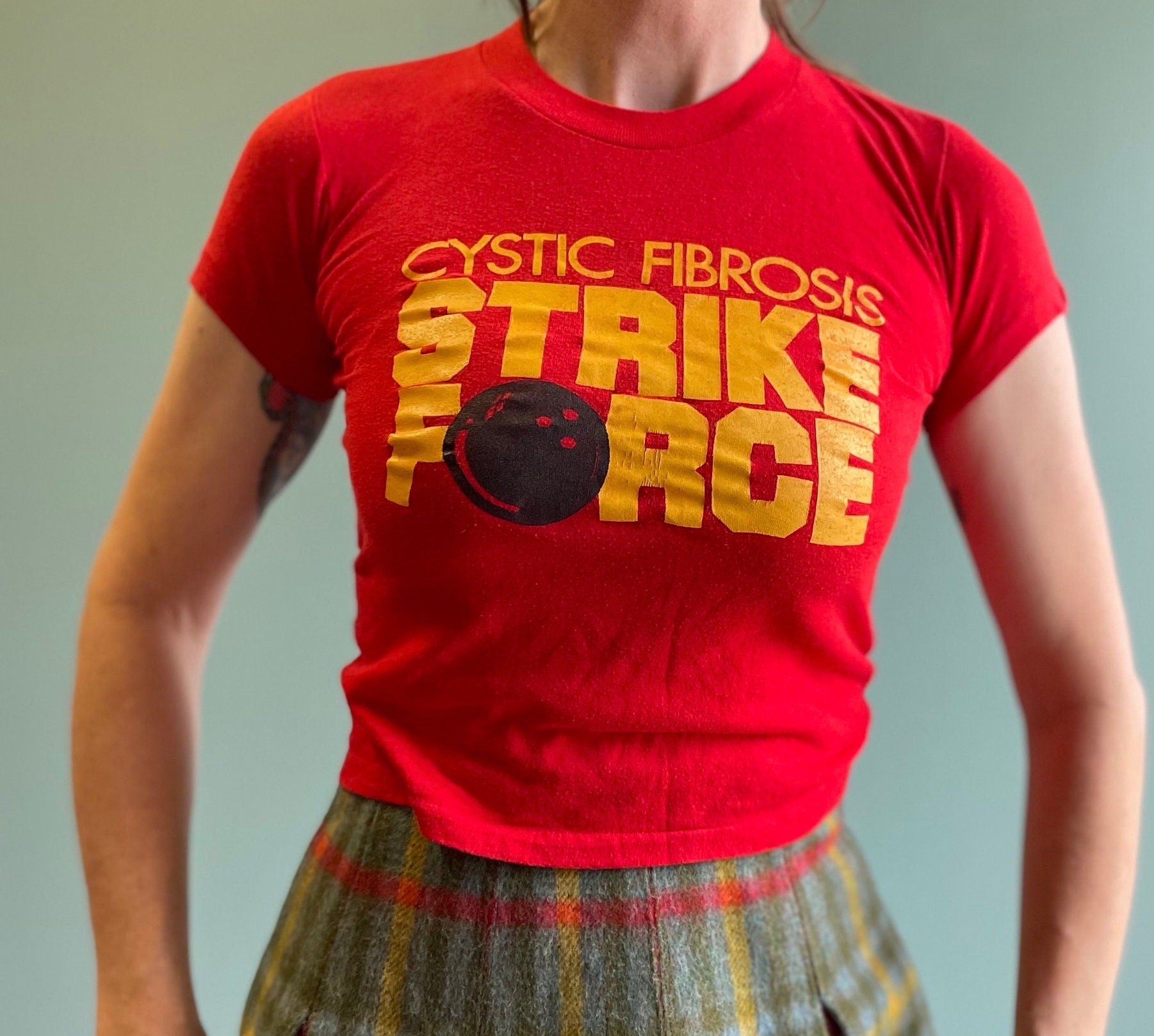 Vintage 80s 90s Cystic Fibrosis Strike Force / Baby Tee Womens Shirt / Crop Top Graphic Tee