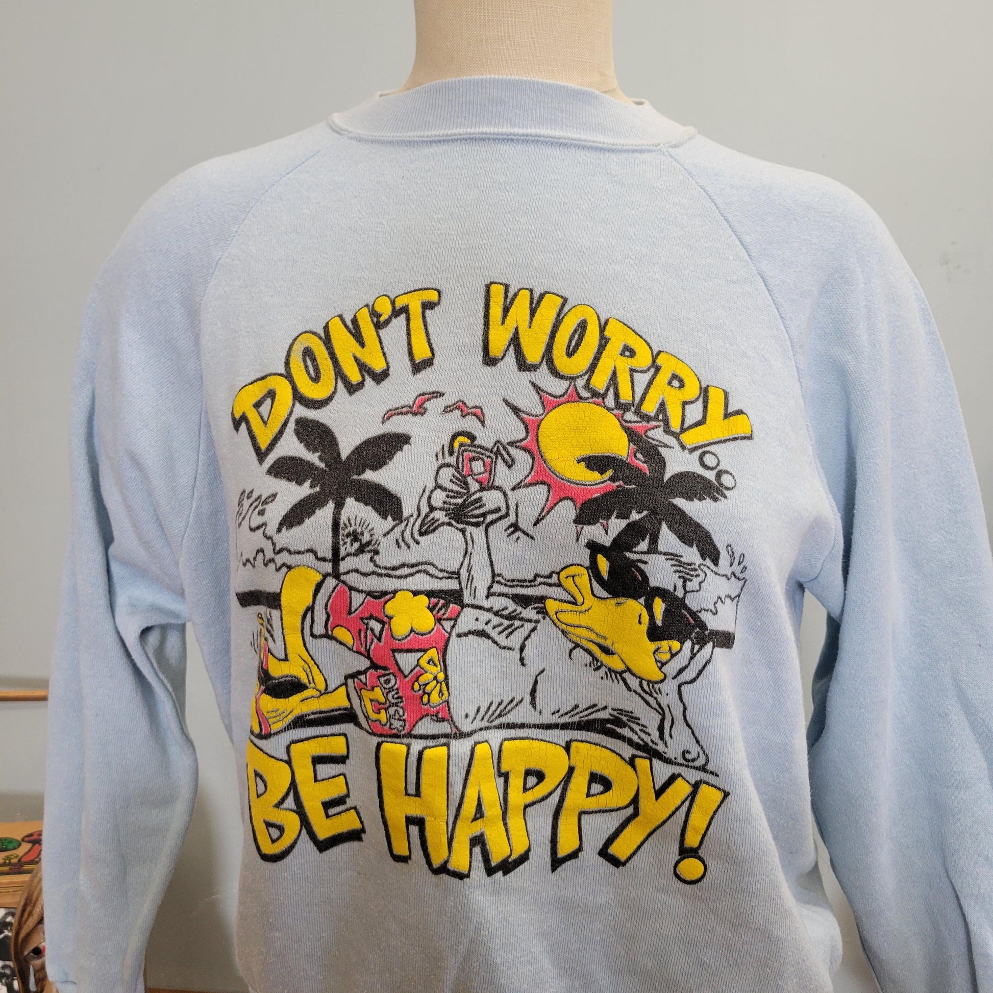 vtg 80s DONT WORRY Be HAPPY Sweatshirt // vintage vertex large don’t worry be happy duck vacation hang loose chill out cartoon funny shirt