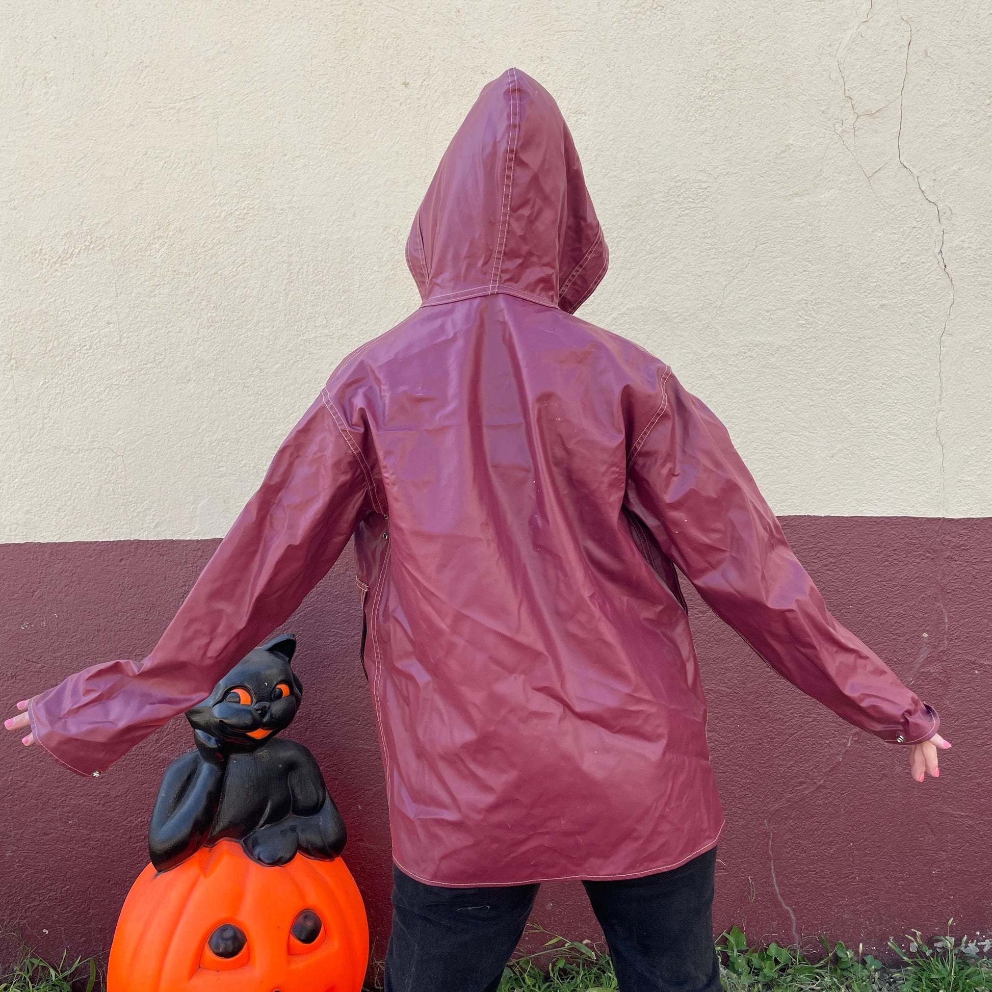 vtg 80s DUCK PATTERNED JACKET // vintage earth tones autumn stranger things 90s grunge pvc wet look shiny waterproof earth tones 90s parka