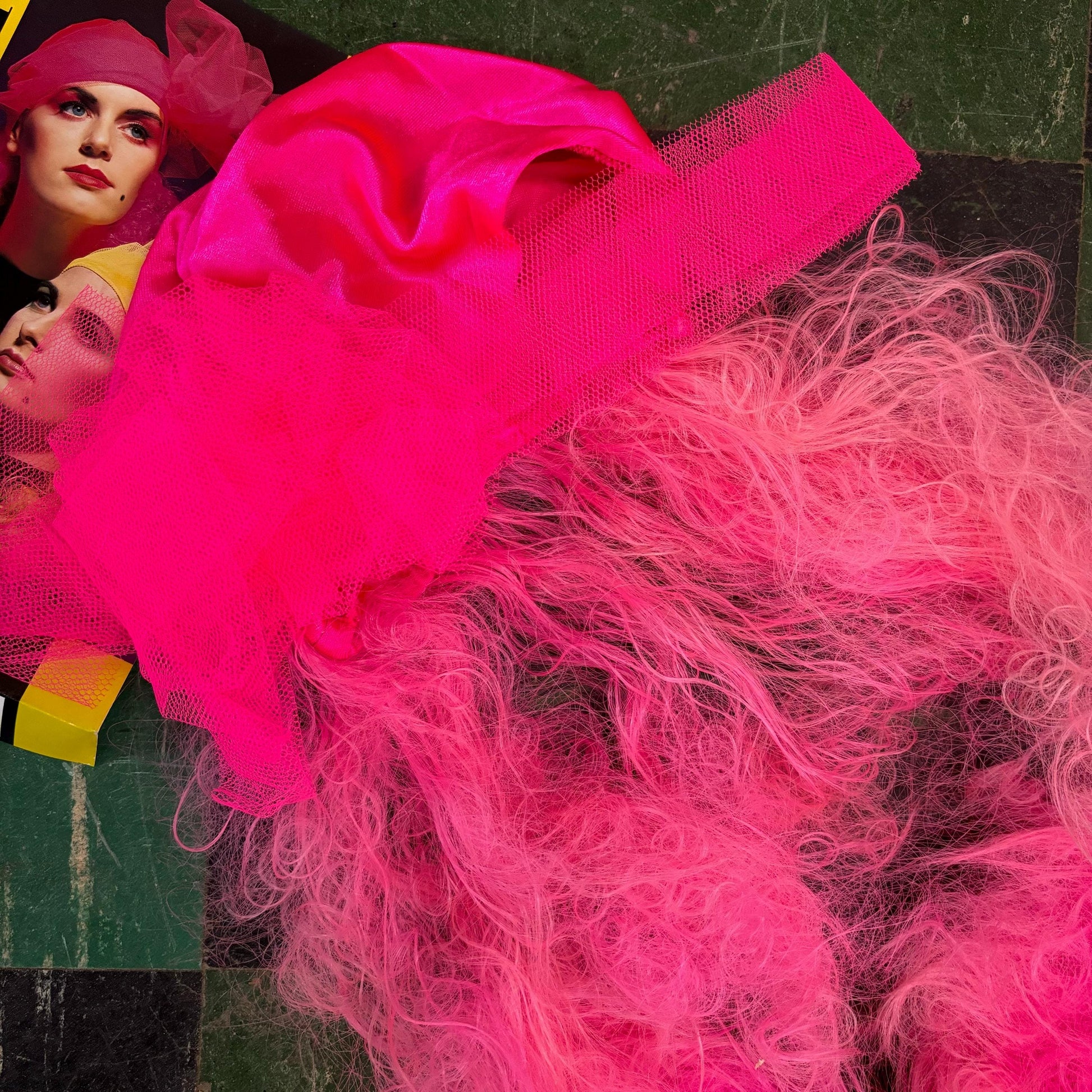 vtg 80s EUROPEAN NEON WIGS // vintage new wave flock of seagulls band Halloween costume set of 2 pink hair wig wedding singer boy george