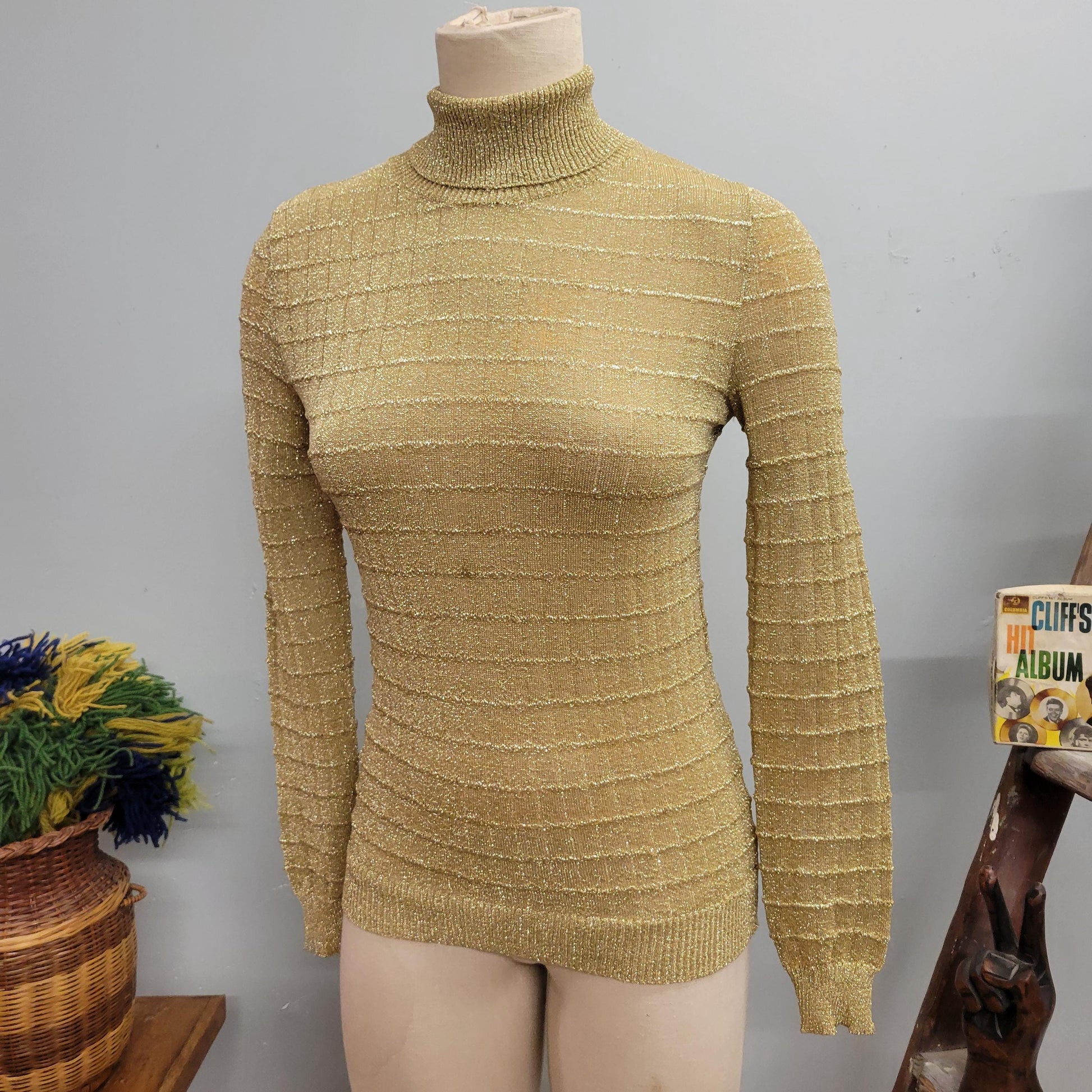 vtg 80s GOLD LUREX TOP // vintage womens medium lurex ribbed 3d textured sparkly glitter mesh mock neck top nicole for arbe disco blouse top