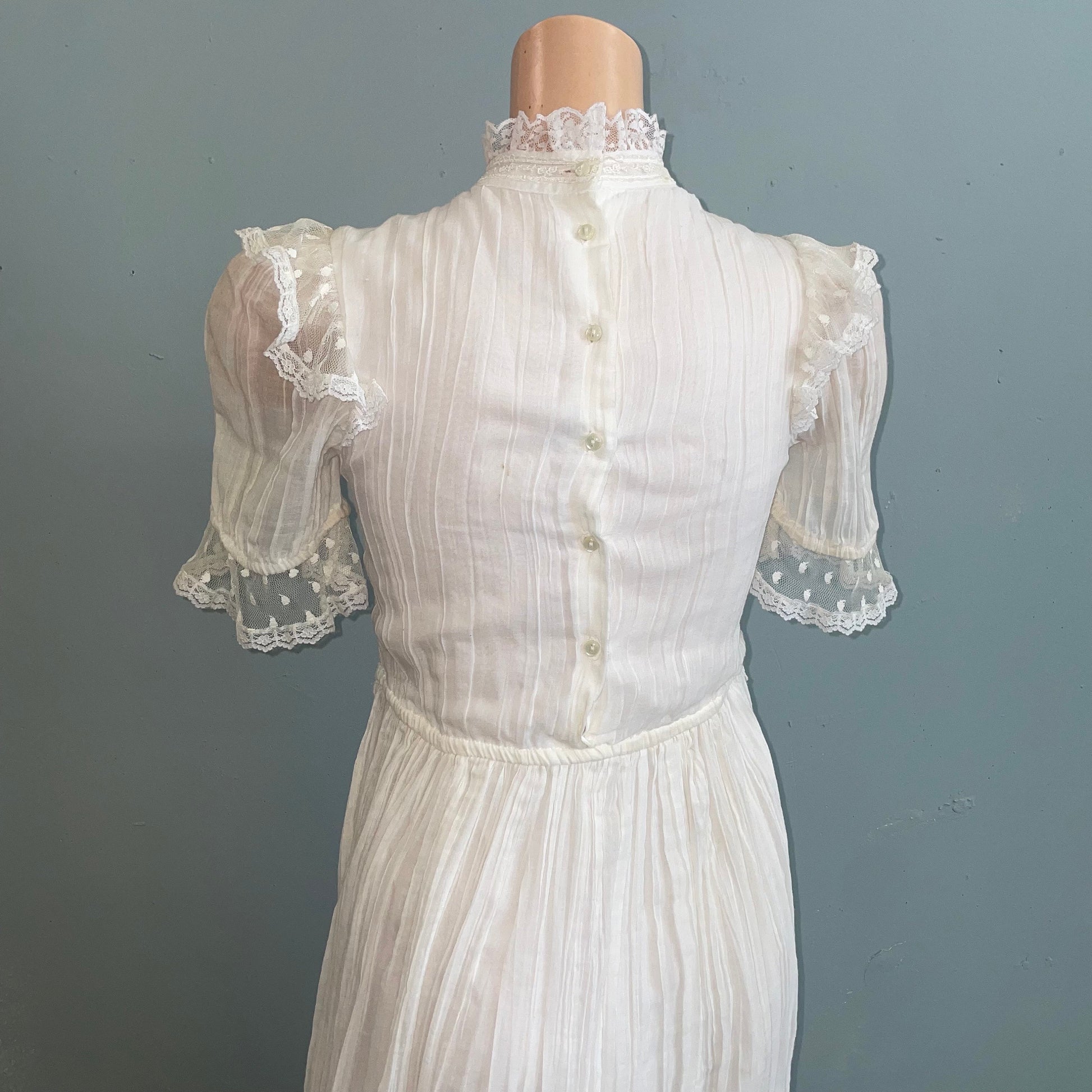 vtg 80s Gunne Sax jeunes frilles by jessica mcclintock girls white gauze lace mesh frilly party dress boho wedding white summer formal wear