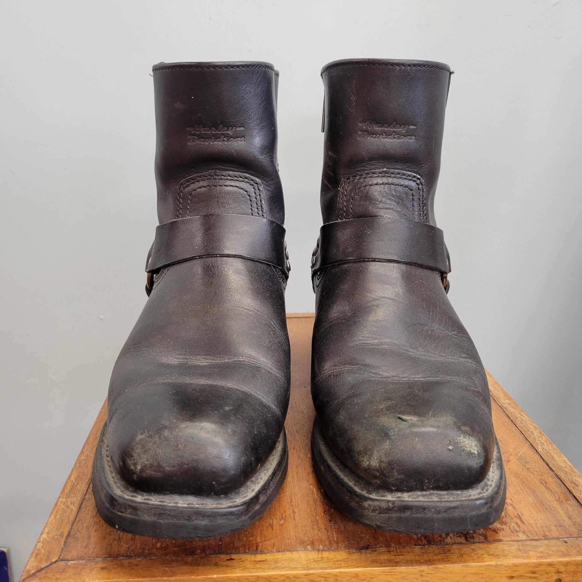 vtg 80s HARLEY DAVIDSON BOOTS // vintage leather size 10 mens usa harness biker boots silver hoop zip ankle boots western easy rider rugged