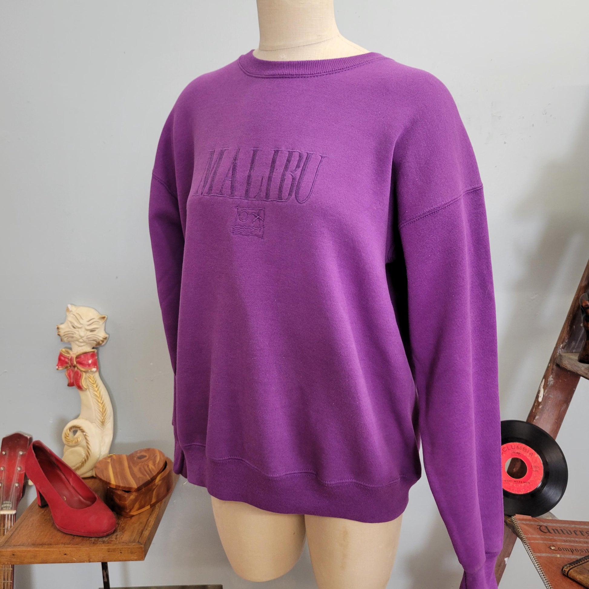 vtg 80s MALIBU CREWNECK SWEATSHIRT // vintage lee heavyweight ladies xl bright purple autumn vibes embroidered california girl 90210 l.a.