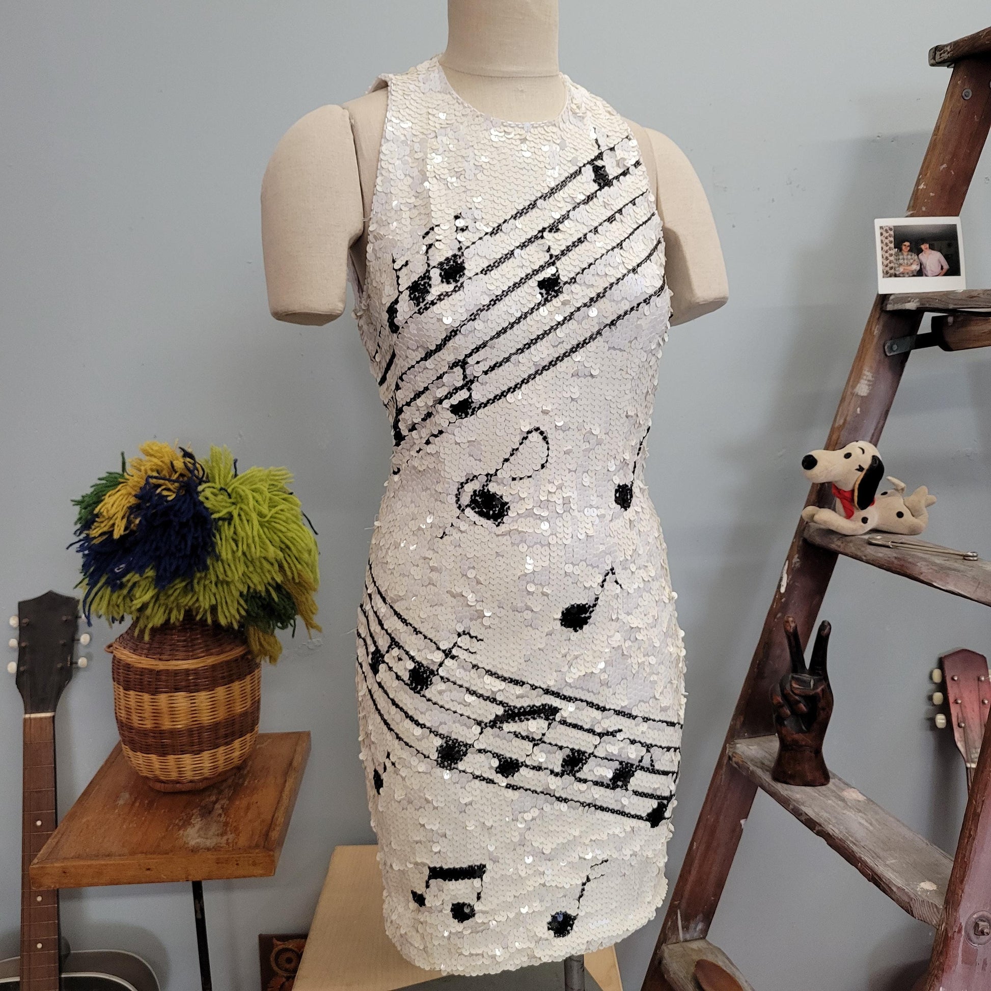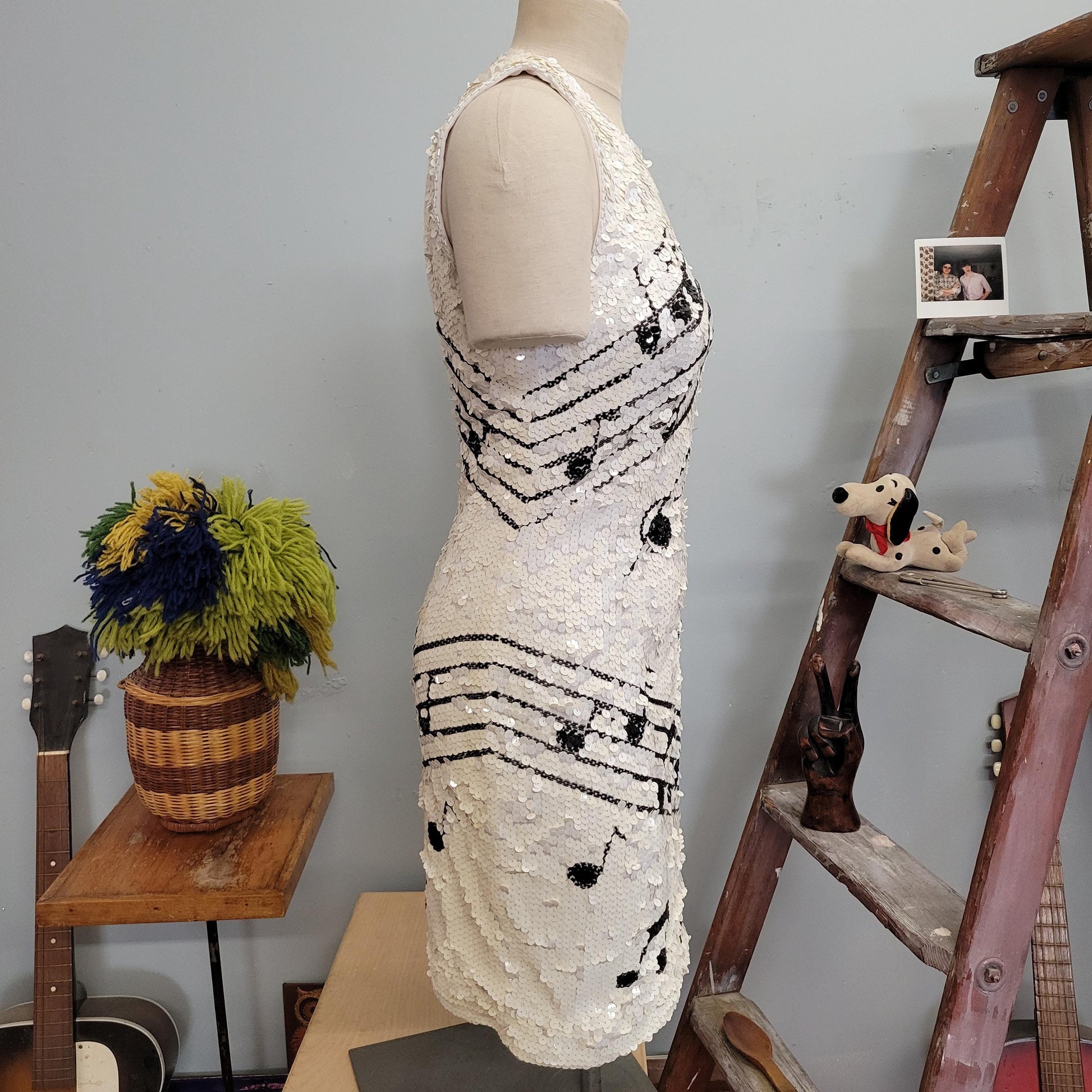 vtg 80s MUSIC NOTE DRESS // vintage fully sequined nadine holiday cut out dress new years fancy cocktail party white winter 80s party dress