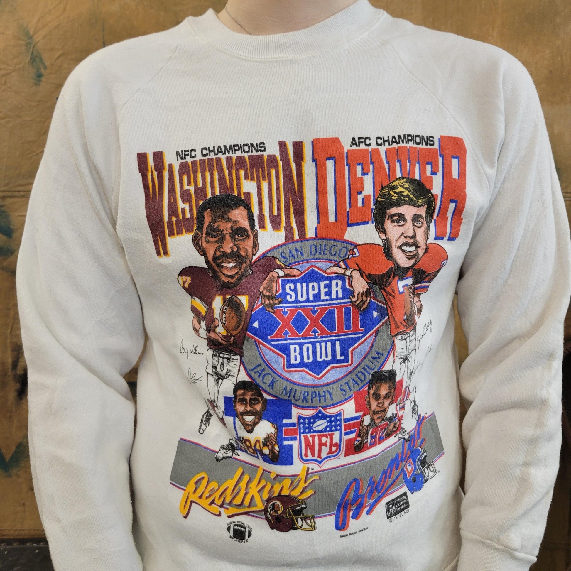 vtg 80s NFL FOOTBALL SWEATSHIRT // vintage super bowl xxii washington john elway denver broncos nfl merch promo team sports event true