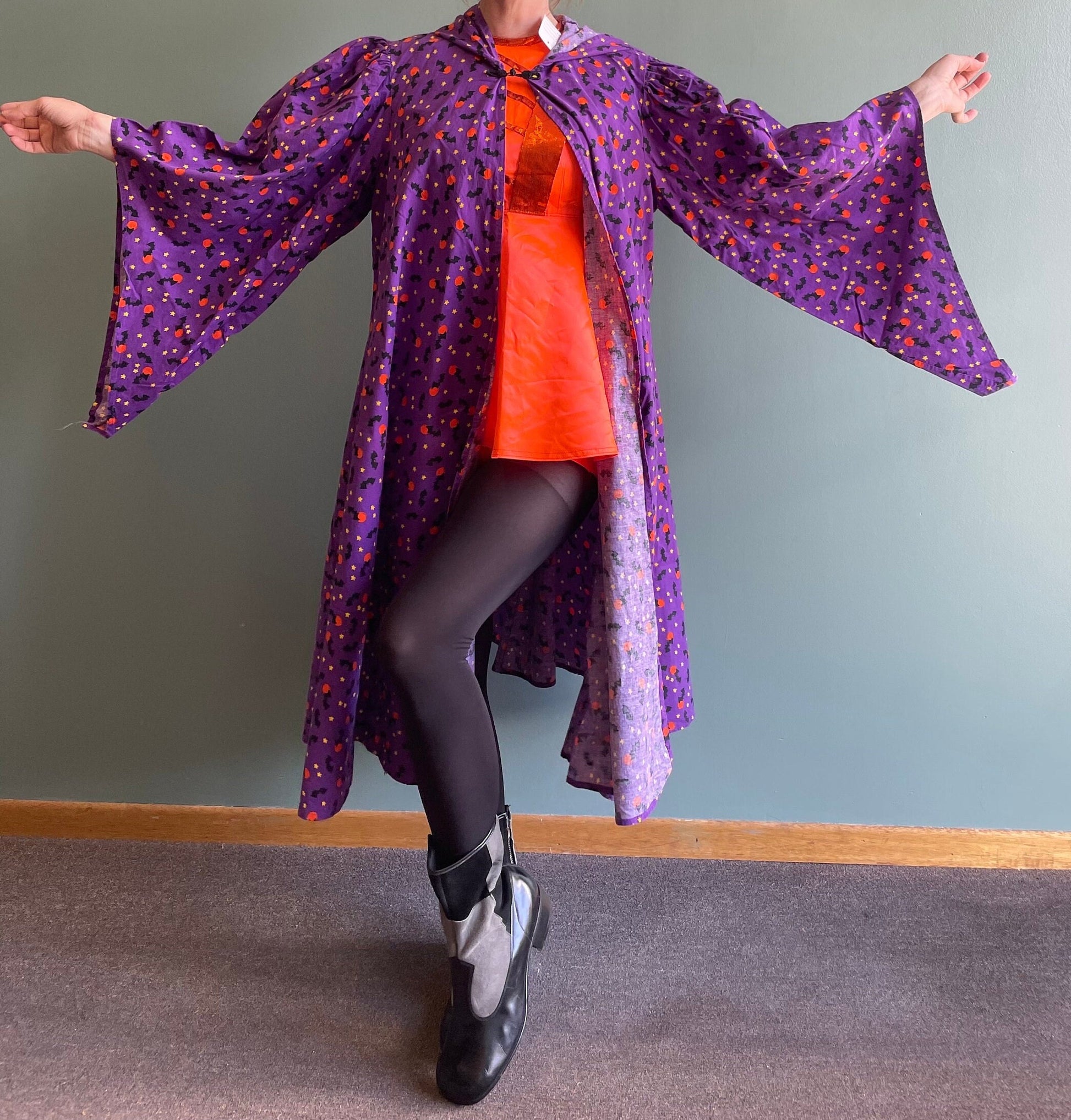 vtg 80s PURPLE WIZARD ROBE // vintage bats moons stars hooded angel sleeve dress Halloween costume hocus pocus cute witch theatre made