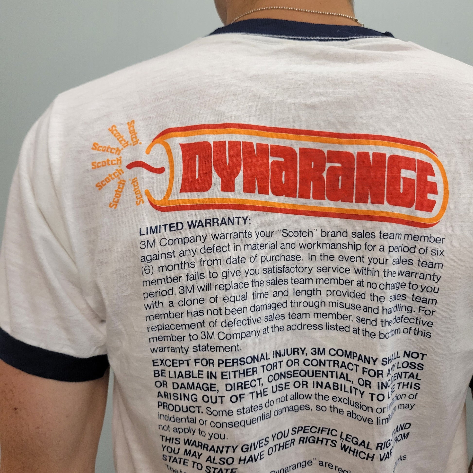 vtg 80s SCOTCH BRAND TSHIRT // vintage medium retro ringer cassette tape reel audio promo sony maxell music stereo sound dyn o mite dynamite
