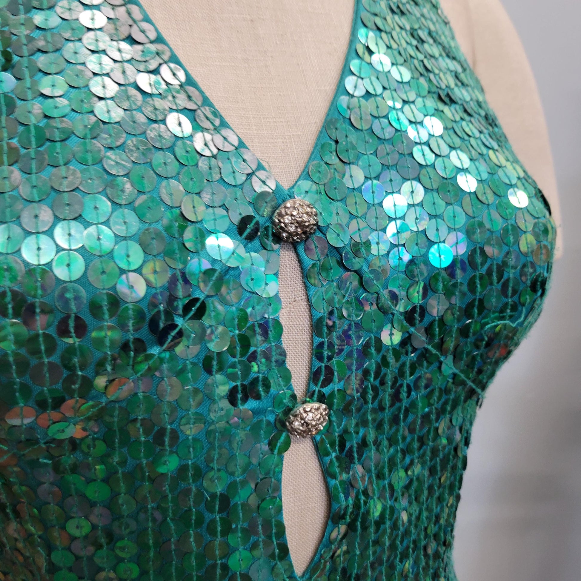 vtg 80s SEQUINED HALTER DRESS // vintage cut out mini cocktail holiday dress sexy deep vee plunge teal beaded new years prom wiggle low cut