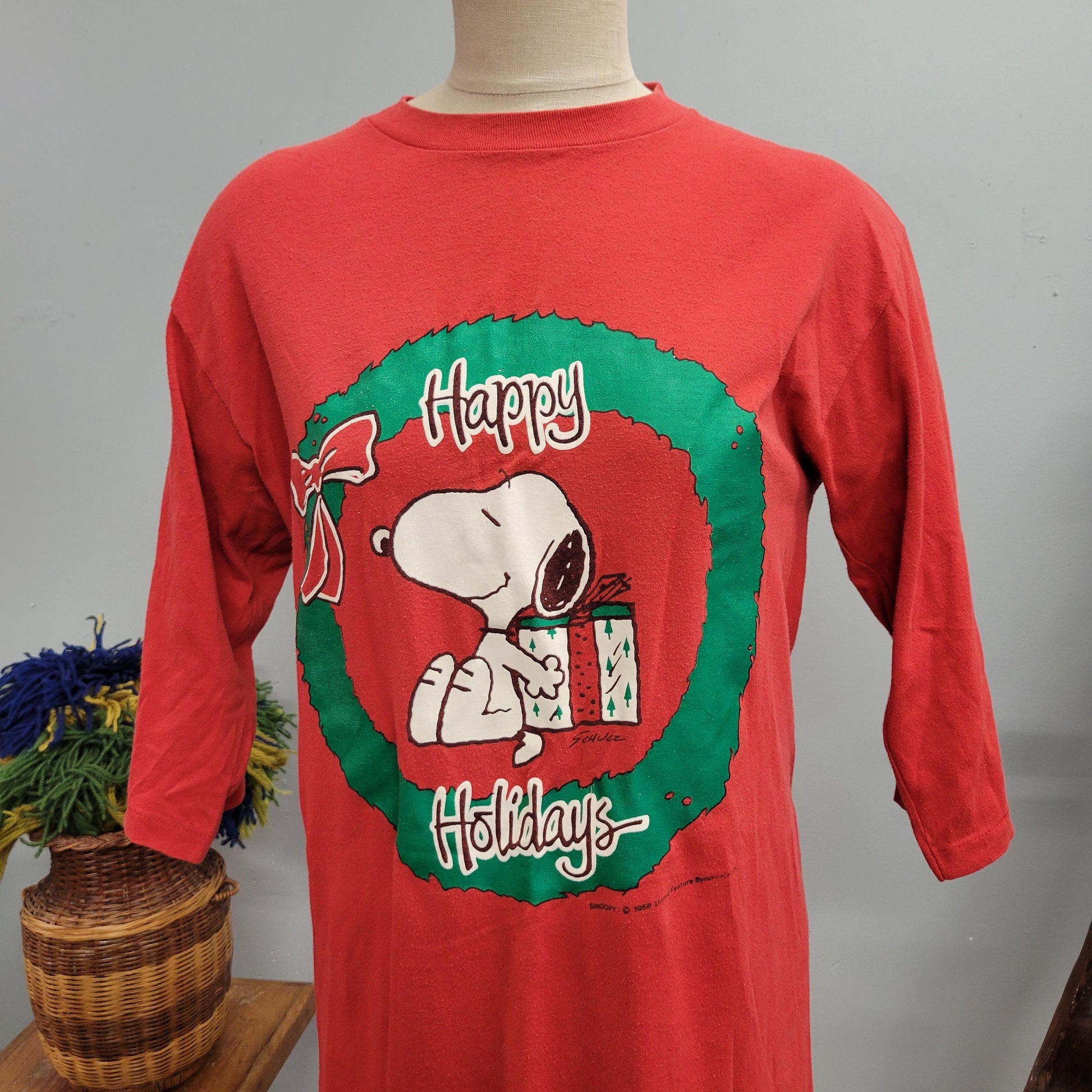 vtg 80s SNOOPY SLEEPER SHIRT // vintage all american medium unisex oversized tshirt dress holidays christmas eve pajamas festive sweatshirt
