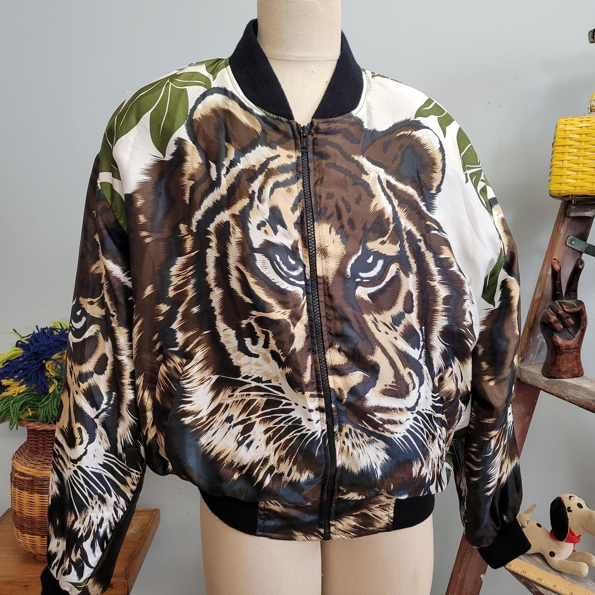 vtg 80s SNOW TIGER BOMBER Jacket // vintage double side xl animal print zip up autumn casual parka windbreaker jaguar wild animal tiger king