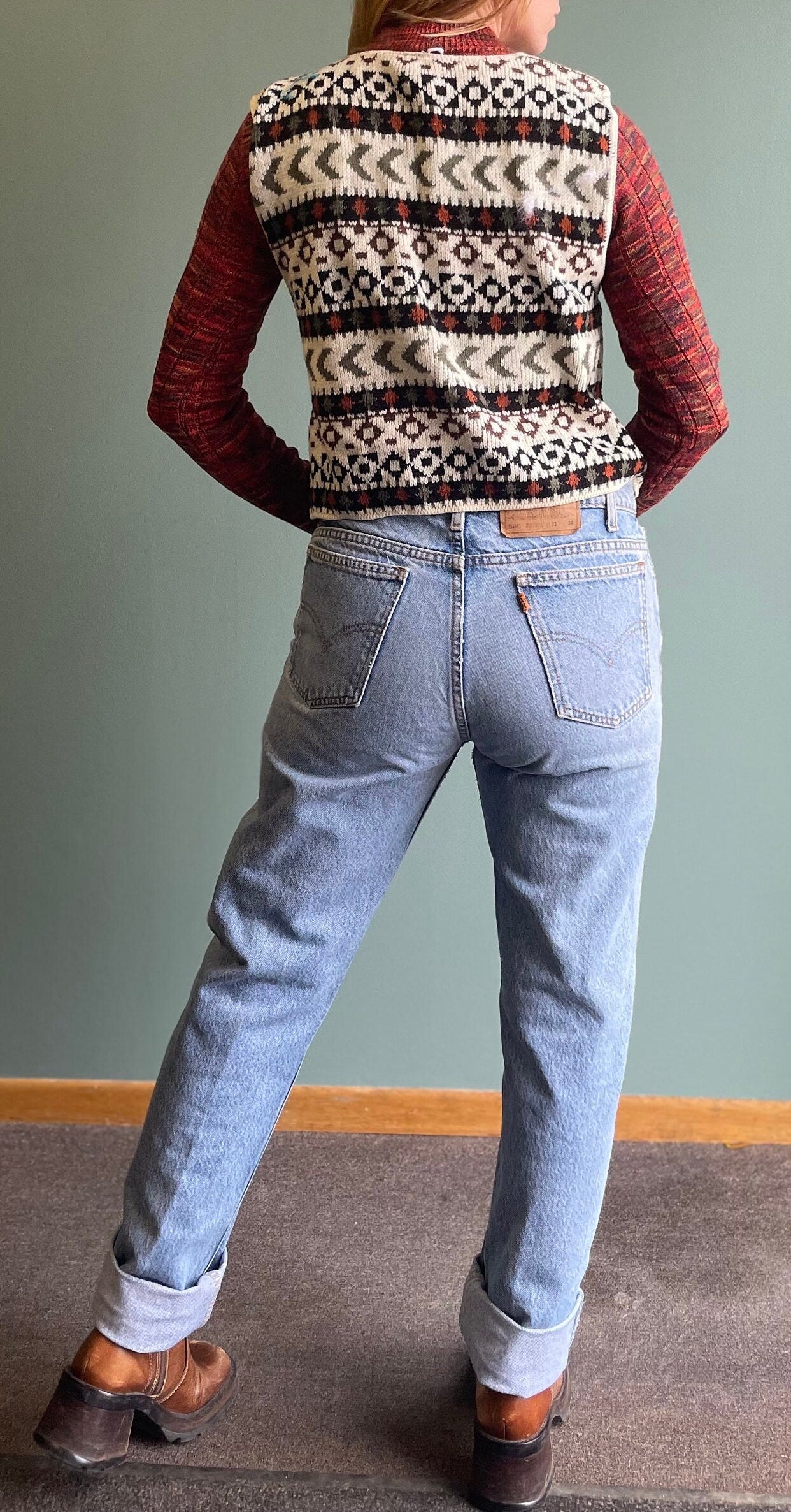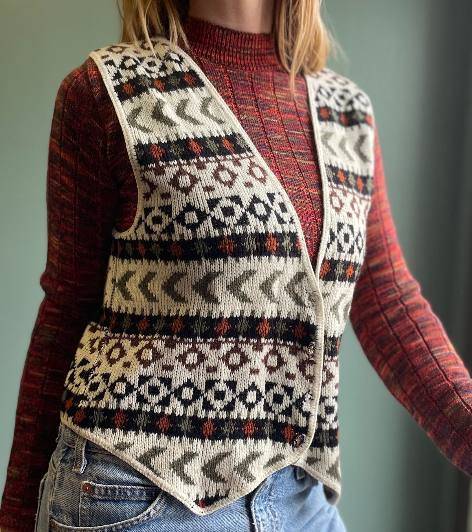 vtg 80s STRIPED SWEATER VEST // vintage abstract patterned button up layering top geometric all over print cropped knit autumn fall fashion