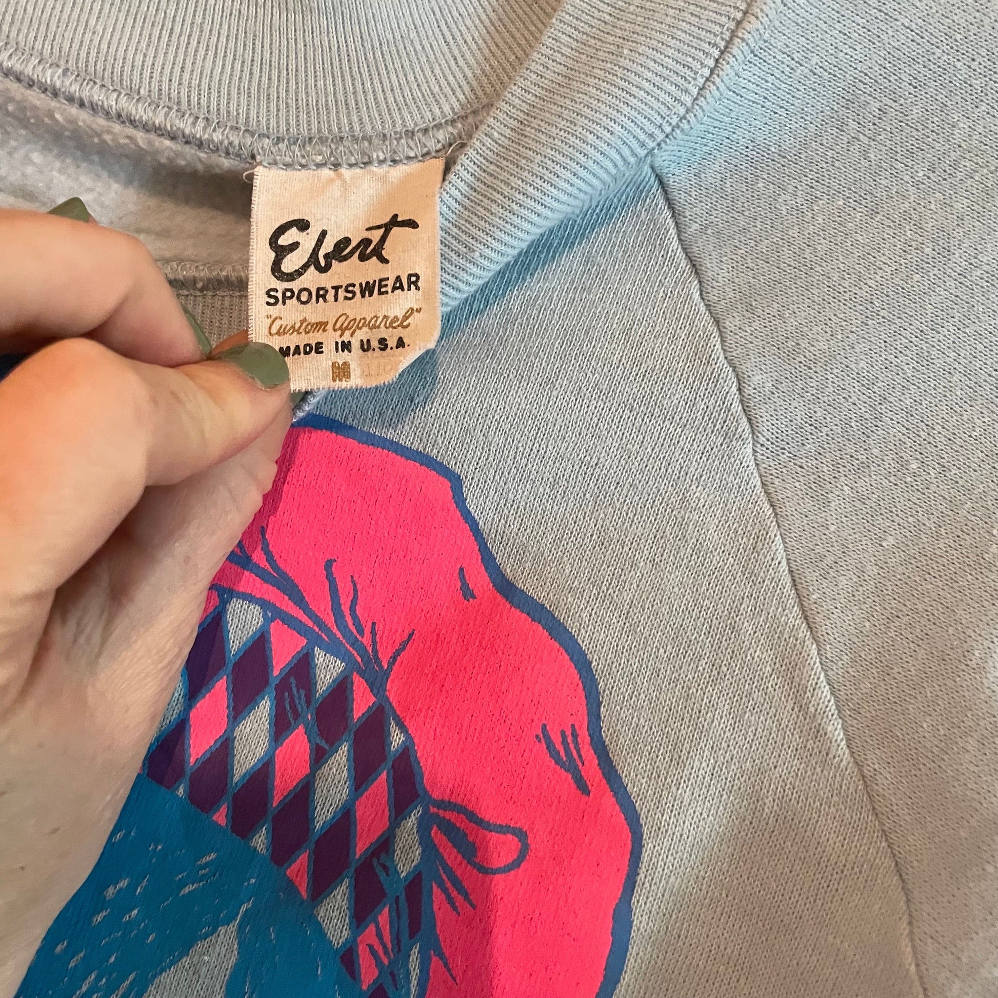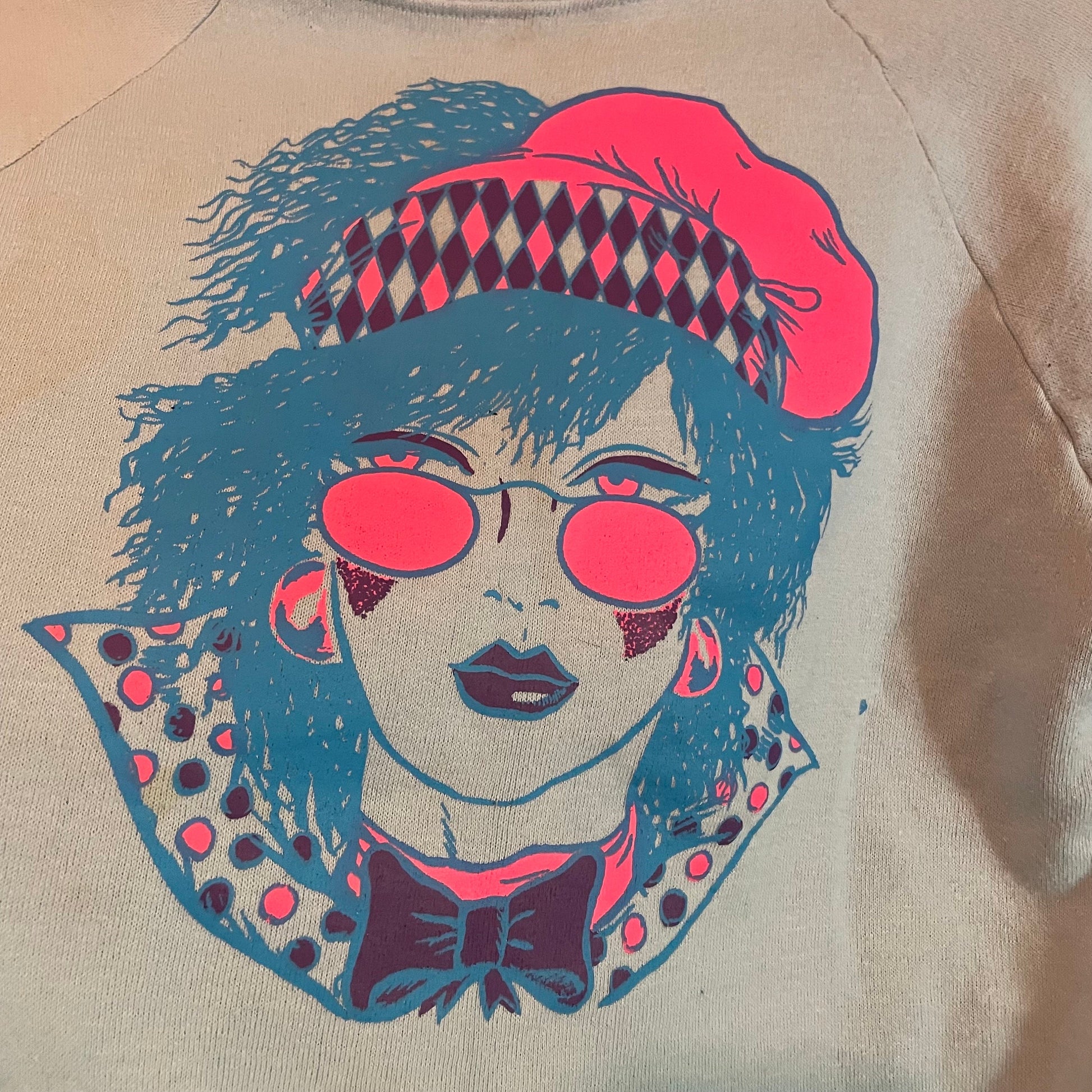 Vtg 80s Vapor Wave new wave Boy George alternative face print neon printed graphic sweatshirt baby clue fitted sweatshirt femme punk retro