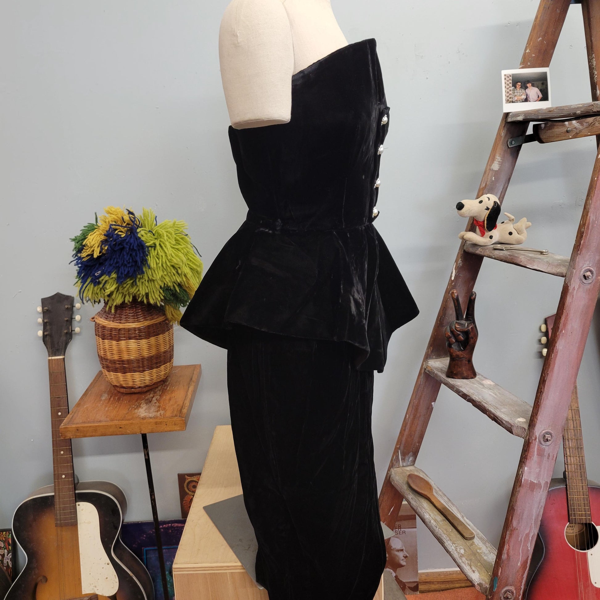 vtg 80s VELVET PEPLUM DRESS // vintage pantagis 11/12 womens medium couture pointy top art deco retro fancy cocktail party holiday dress
