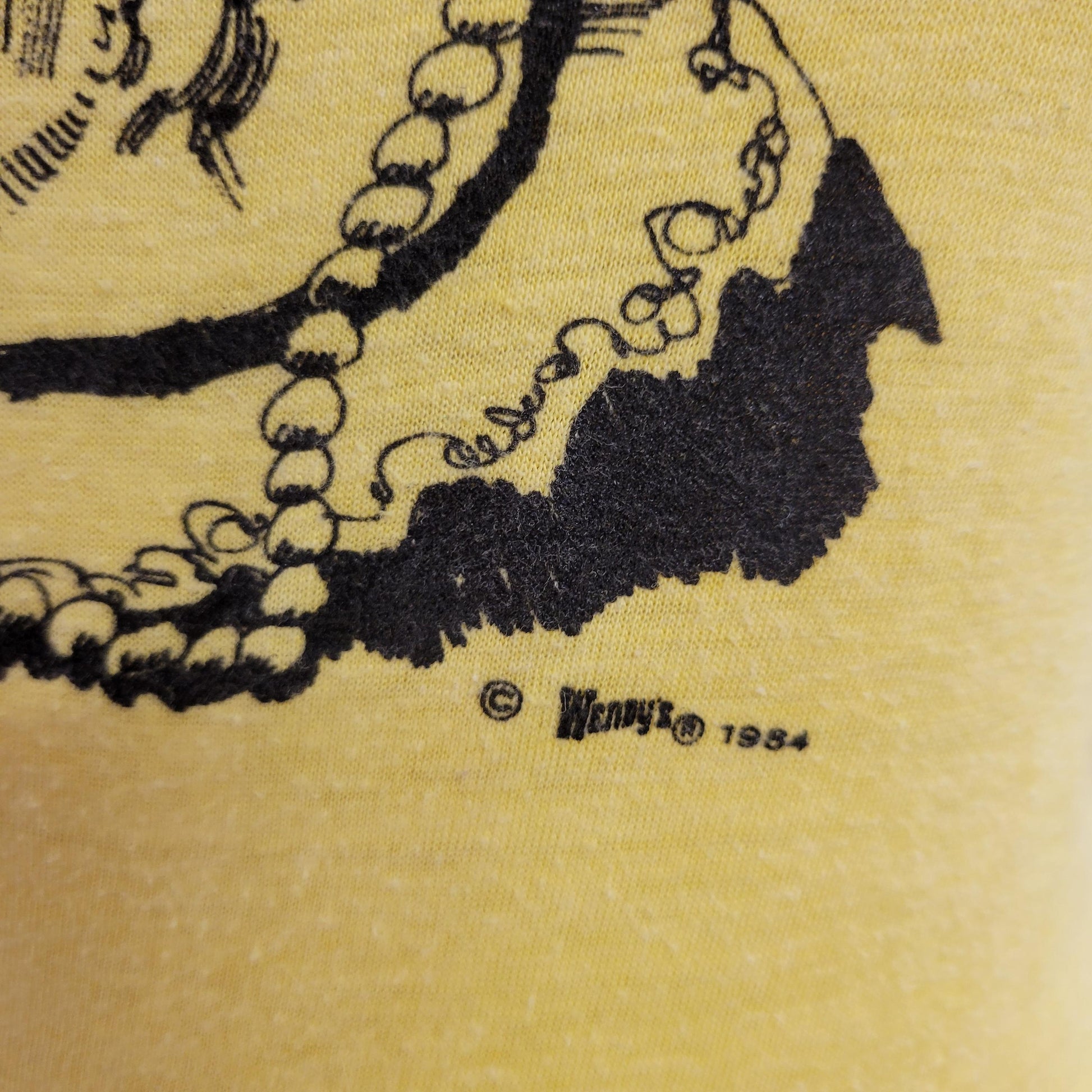 vtg 80s WENDYS BEEF TSHIRT // vintage funny food 1984 teammates adult unisex small paper thin hand drawn restaurant staff retro fast food