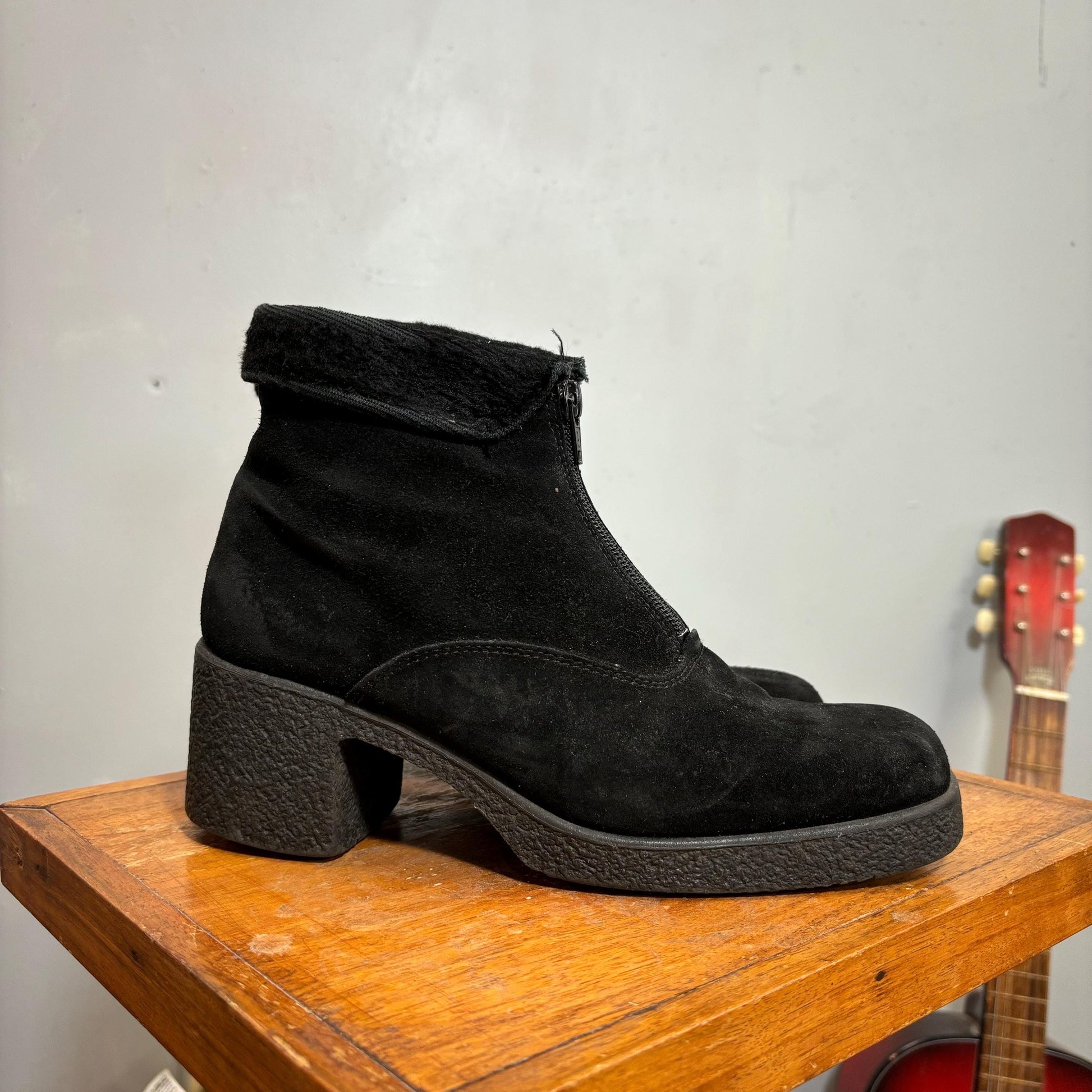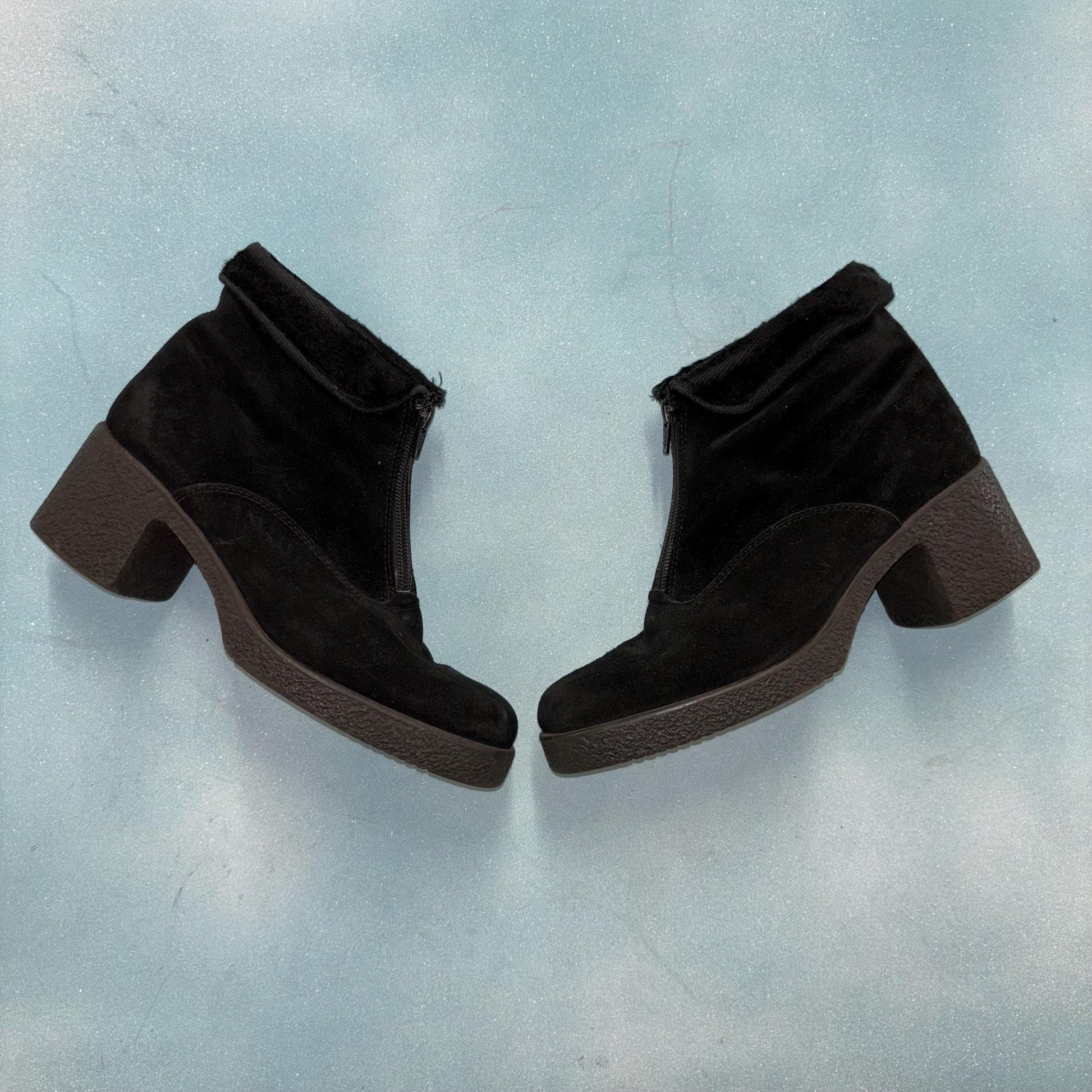 vtg 90s black suede chunky ankle boots