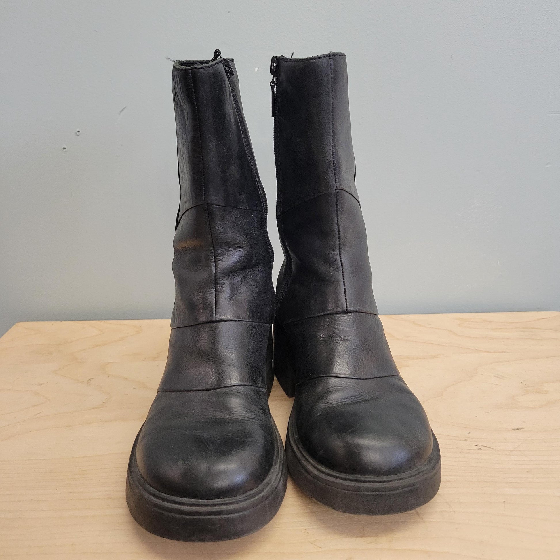 Cute leather E Spirit Brand vintage chunky heel black boots