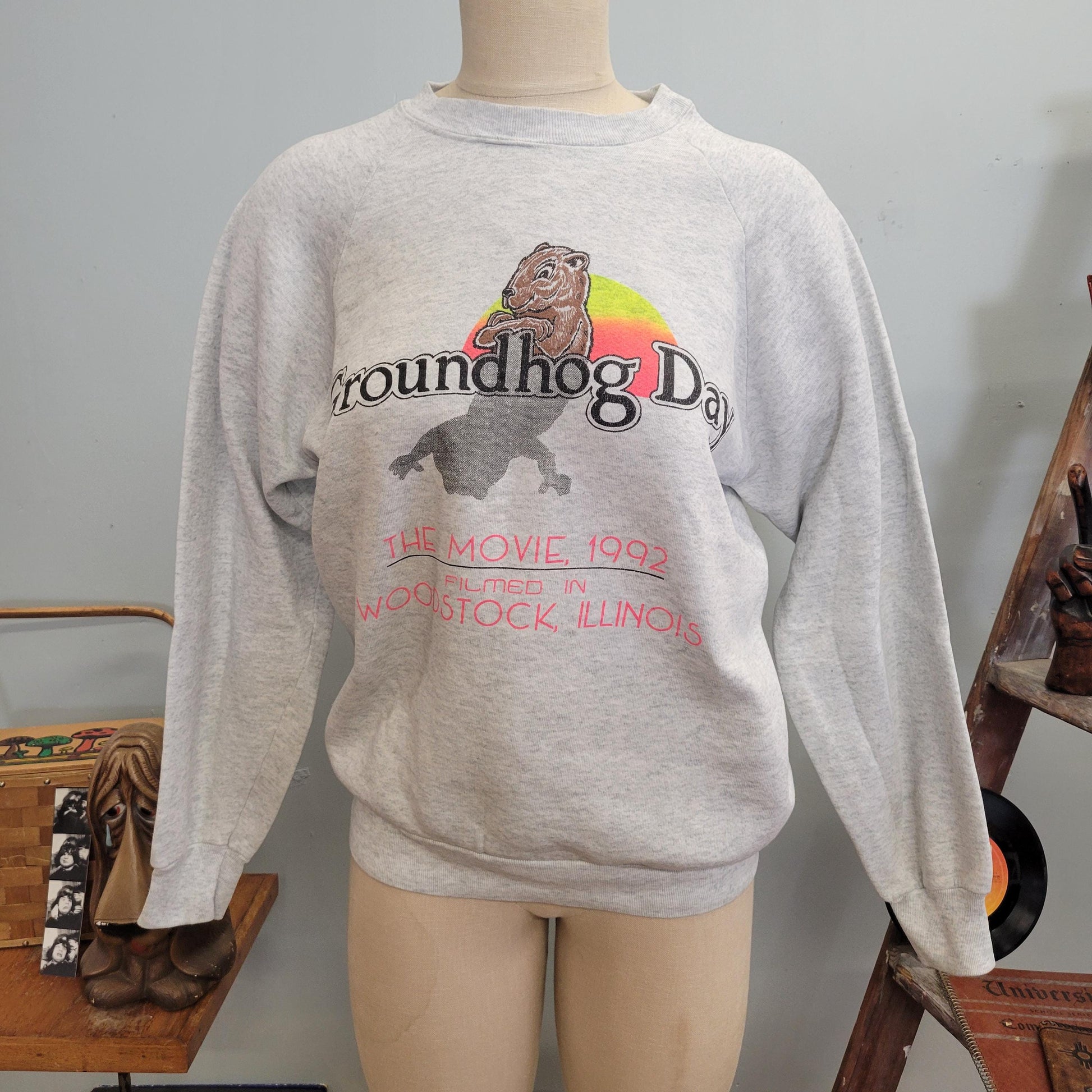 vtg 90s GROUNDHOG DAY SWEATSHIRT // vintage 1992 movie sweatshirt bill murray Punxsutawney Phil holiday souvenir tourist Woodstock Illinois